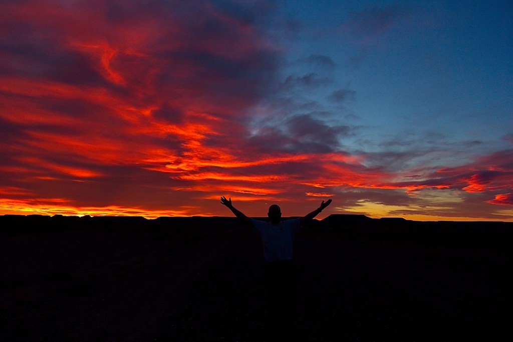 We turned off the main road and headed out toward the National Park with the petrified logs. It was about 50 km on a pretty rough gravel road. It was starting to get late and we wanted to settle down and watch the sunset. There is nothing out here. Nothing for miles and miles, except for one really crappy-looking pay campground.