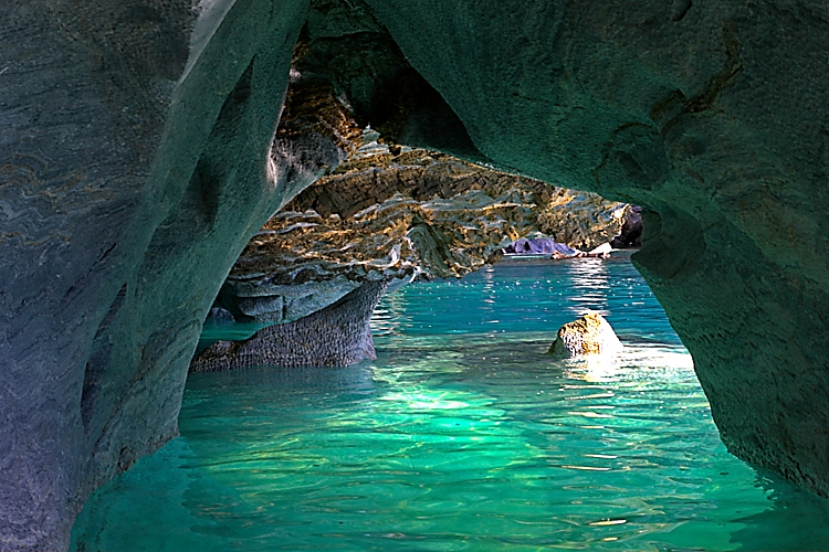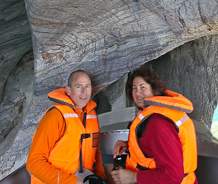 We headed north to Rio Tranquilo where there are some really cool marble formations that you can catch a boat out to tour. We stopped at the first sign that was advertising the tours and headed down the hill. It was a REALLY steep and rough road that made Susanne very nervous. We got down to the place and they had a nice little campground and some boats. There was some dude glaring at me when I parked. Whatever.