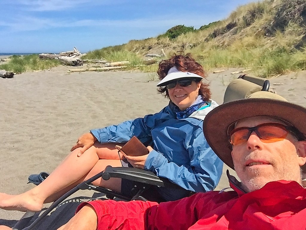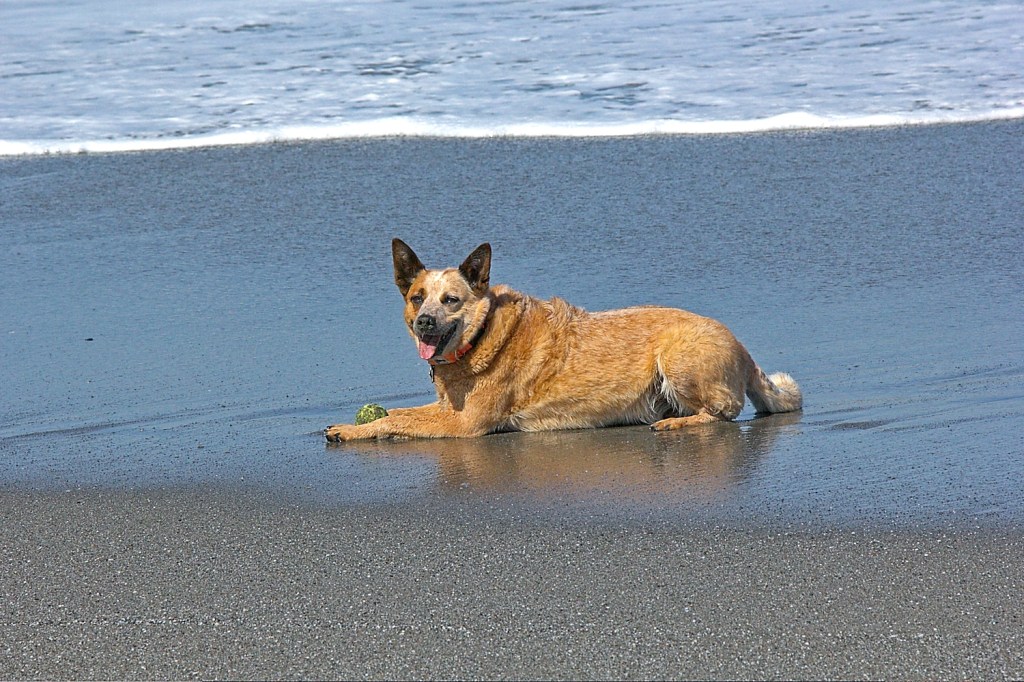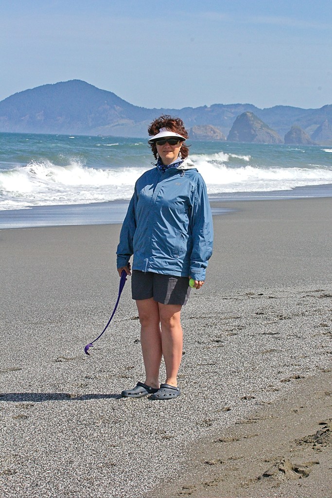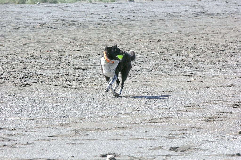 Sadie was in heaven chasing her tennis ball. They were both filled with sand. We walked a couple miles down the beach and came back to get our chairs and just generally hang out on the beach. We found a spot that was sheltered from the wind and it was quite pleasant. It is amazing how chilly it gets when the wind blows over that cold ocean water.