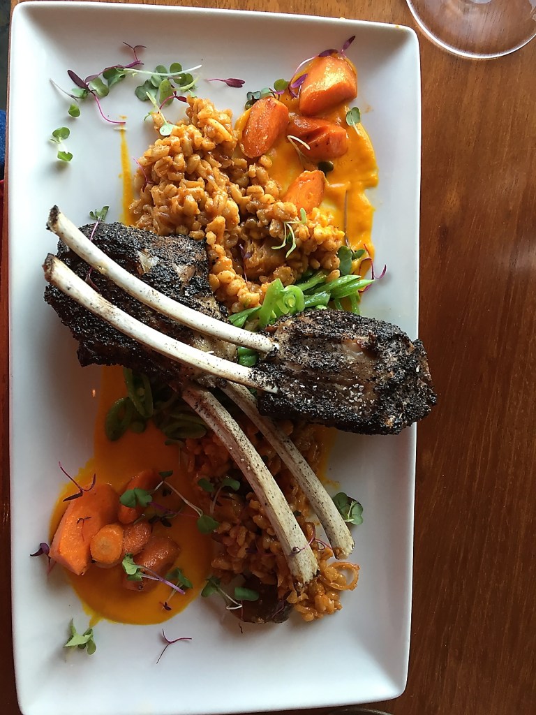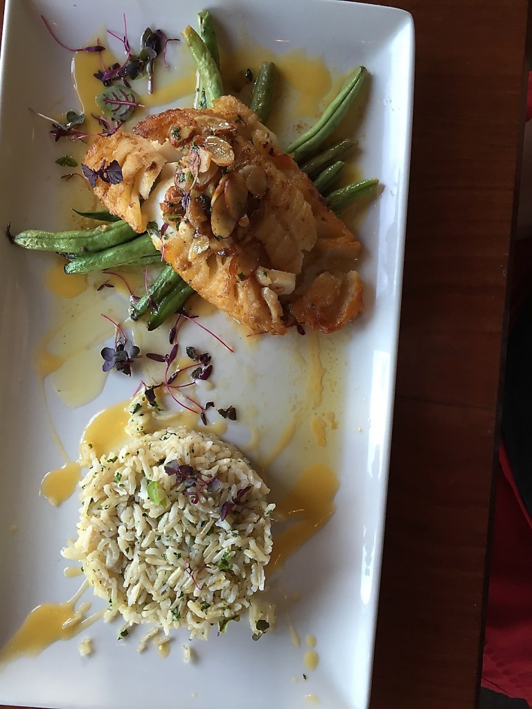 For dinner, Susanne had cod and I had some lamb chops. Both were outstanding. Her fish was cooked perfectly. Nice browned outside and a beautiful translucence on the inside. My chops were well cooked and the cooked carrots served with barley and finely sliced green beans were really good.