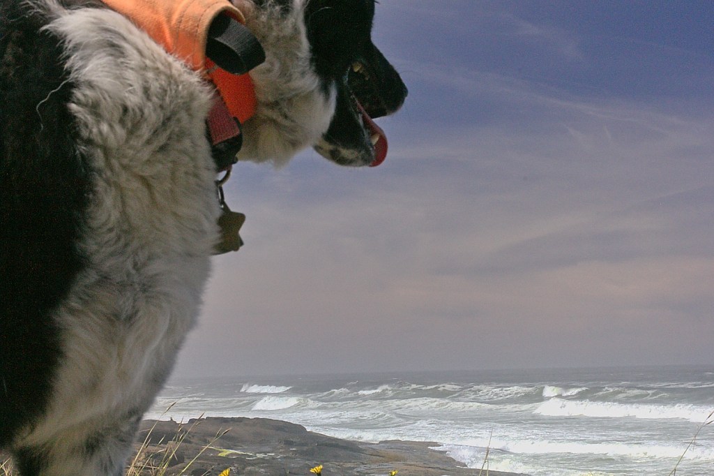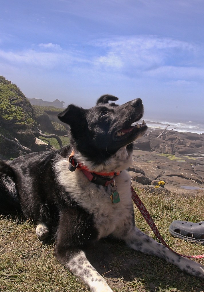 We had a late breakfast and then headed over to Yachats to take the dogs for a walk. We parked at Smelt Sands beach. It was the beginning of some famous trail called the 804.