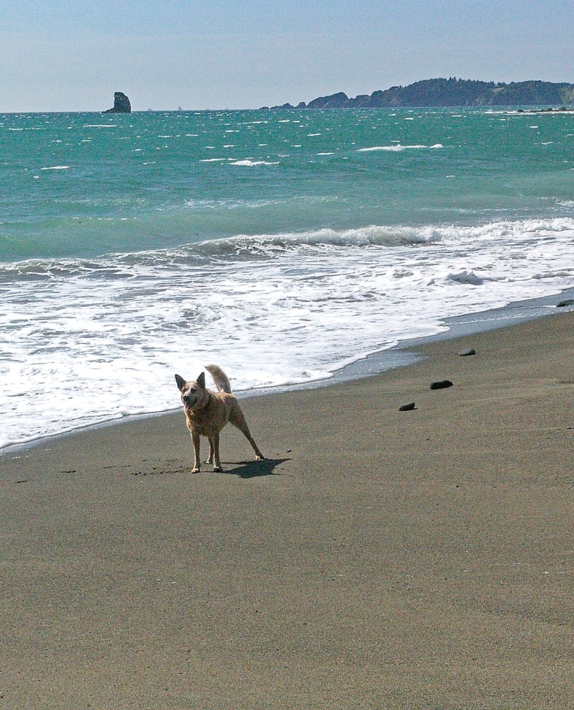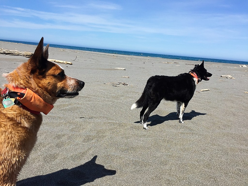 The campground was packed. Really packed. We groaned. Ugh. We leveled the trailer and took the dogs down to the beach. The wind was blowing about 50 mph. The dogs were going crazy. It was pure joy. They kept racing up and down the beach chasing each other and wrestling. There is no way it wouldn’t make you smile to see them.