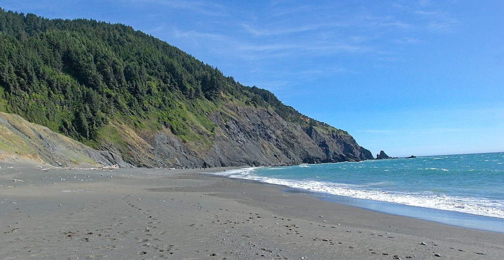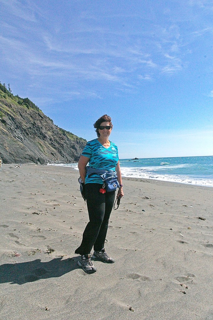 It was a gorgeous sunny day and the drive up the coast was beautiful. It was super-windy though. And windy. Hmmm…..well, both of those in any order. We got to Humbug Mountain State Park and headed into the campground. The crabby volunteer yelled at me and told me the speed limit was 10…..I was doing 15.