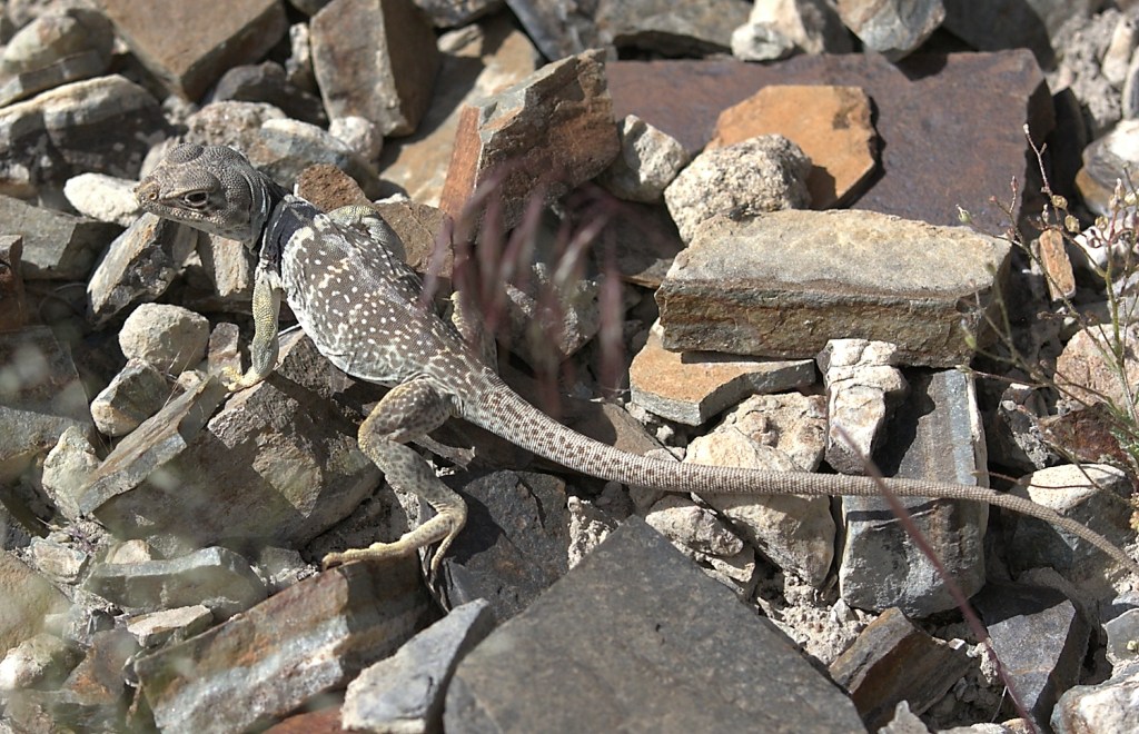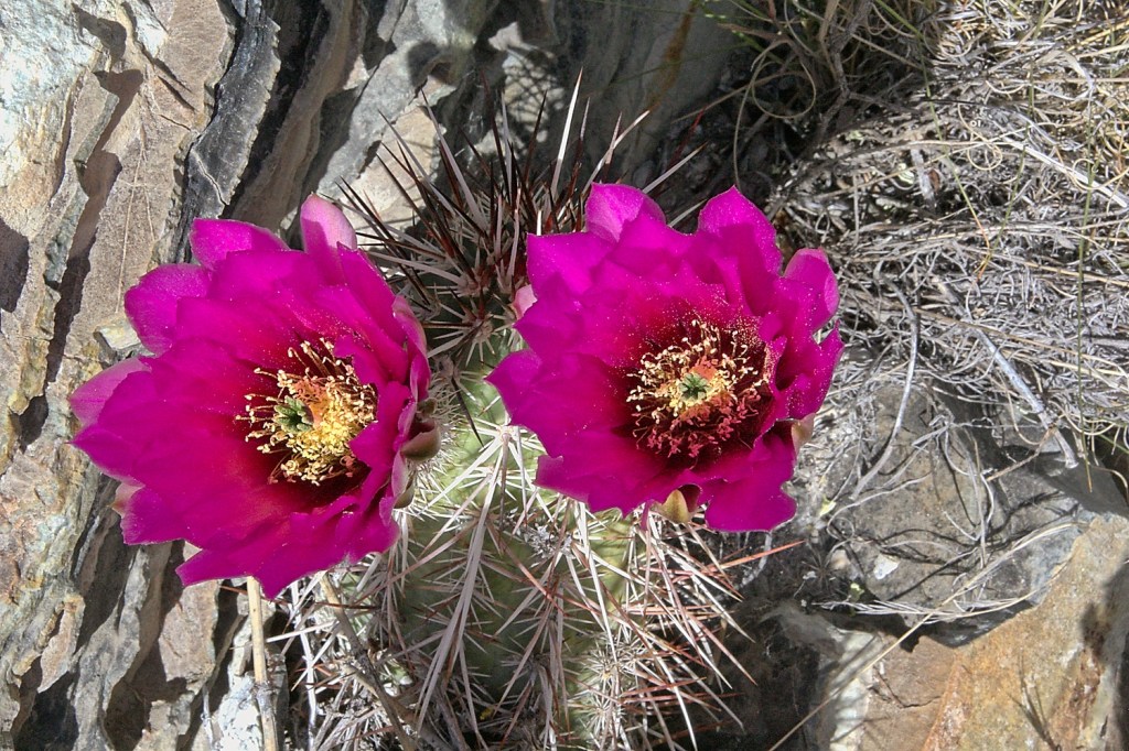 We walked up the upper stretch of the road and to where the trail started for Notch Peak. There was a big granite intrusion that had pushed up into the Triassic limestones that make up the steep cliffs of Notch Peak. It was some pretty cool geology and the rock formations were really nice. A lot of flowers were out—spring in the desert. The dogs were super happy to be on a walk, and they were panting hard as it was pretty warm.