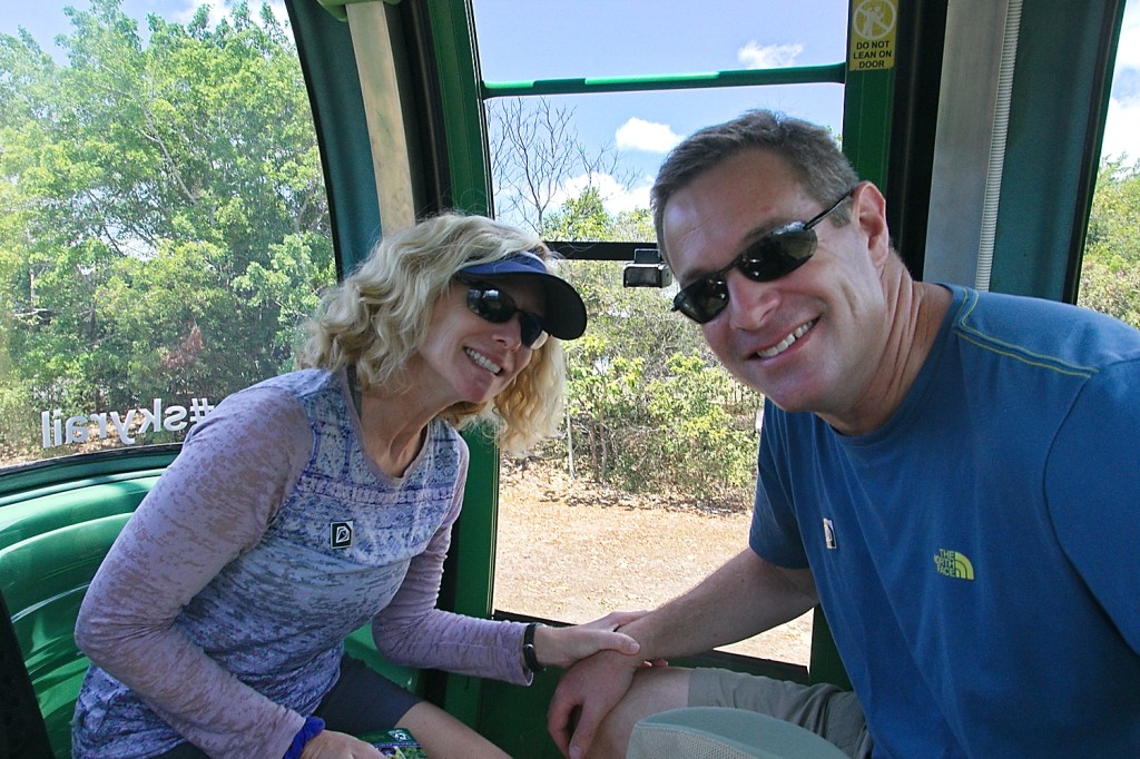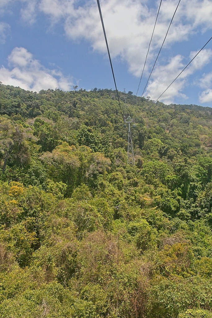 At 11 we headed out to the gondola. Jason had booked us a glass bottom version. The gondola runs up and over the mountains and then down into the little town of Kuranda. Here are some basic facts: