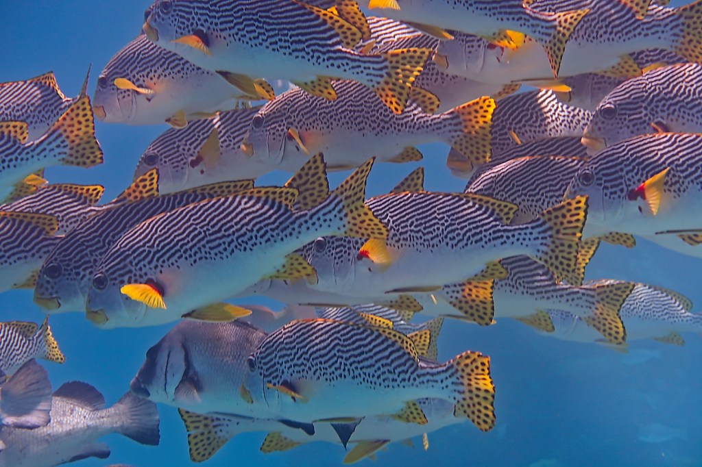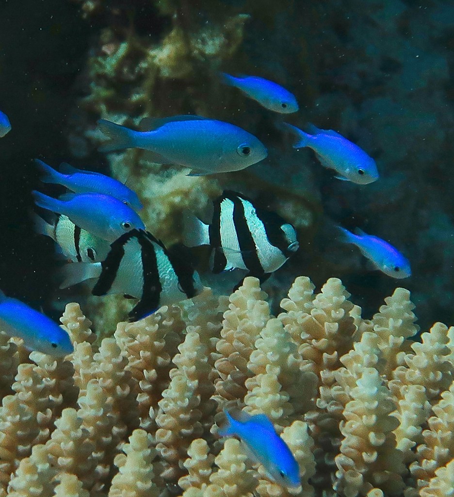 We did the morning briefing and the dive was going to be through a bunch of bommies. Flo said the fish would be all grouped together for safety and warmth.