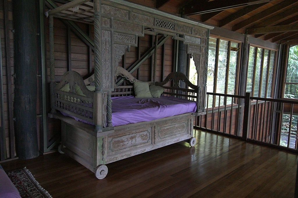 It clearly, at one time, was amazing. It is still pretty cool, but it is in desperate need of some additional TLC. It has a 20-yard salt water pool that is quite nice. There are not very many bedrooms, but tons and tons of open living space. Clearly a house built for parties. It runs completely off the grid and can be completely opened up with massive sliding glass doors. The master bedroom has an amazing view. There are many things in the house that look quite antique and valuable. There is a hand-carved stone chest in the master bedroom that has to be incredibly valuable. It was full of a bunch of old pictures from the early days in Australia (yes, I was a big snoop). Frank literally said “nothing is off limits.”
