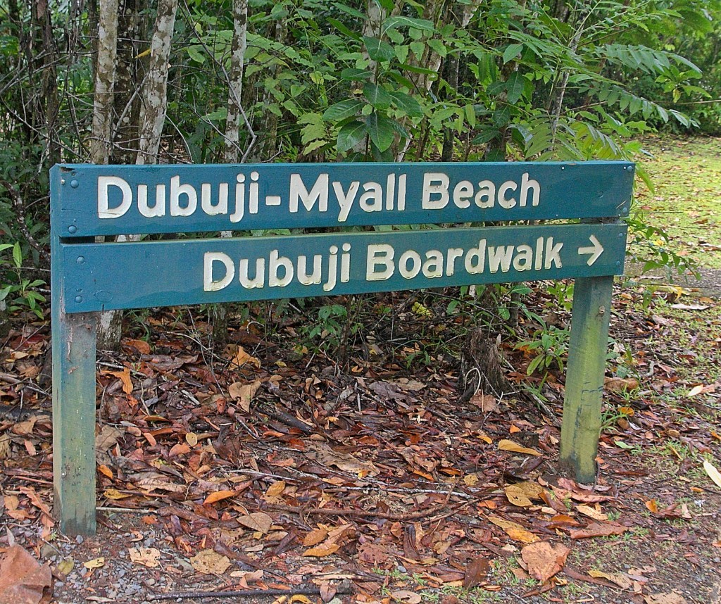 After a depressing cup of Via coffee, we packed up our gear and headed out toward Cape Tribulation to check out the sights and do some of the board walks. We stopped in Thorton Beach for a cup of flat white. We had some signal there so got our emails, but it was tough, because we didn’t have anyway to look for lunch spots or other attractions. Very old school. We walked down the beach to check it out. No swimming here. Crocs. Well, pretty much every where along this coast there is no swimming. The warning sign made you know you were in Australia where pretty much everything will either kill you or make your life exceedingly uncomfortable.