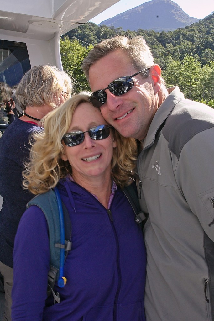 We got to Manapouri, got the car parked and got ready to get on the boat. Susanne and Cynthia checked us in. He told them we were top of the list. Yeah! Sadly, it was a meaningless title and we had to pile on the boat with about a hundred people including a number of young babies.