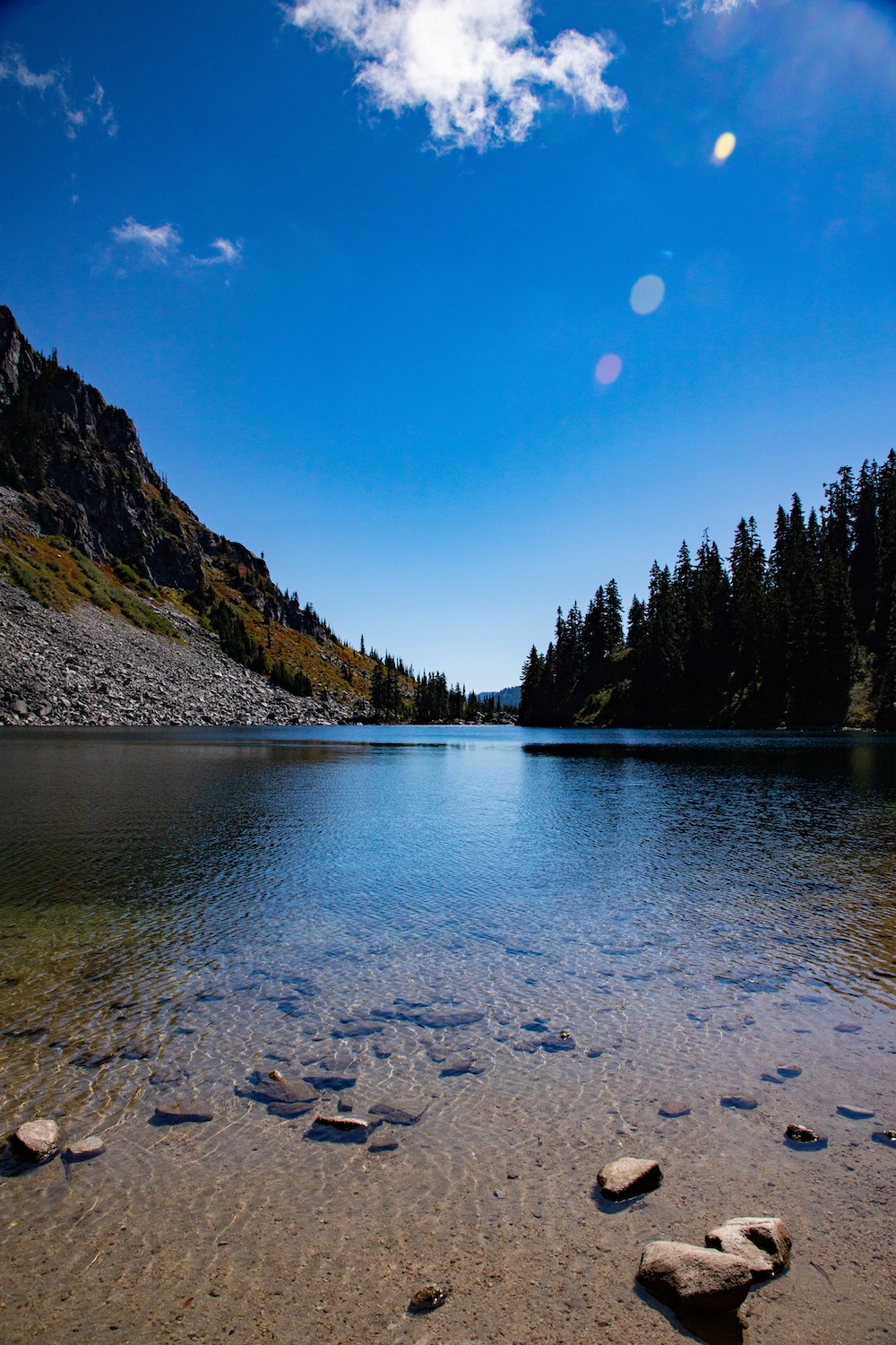 The trail climbs up and over a ridge that gives you a wonderful view down into the lake. It was truly amazing. There weren’t too many people when we showed up, so we found a nice spot down on the beach and set up for some fishing. Susanne tried for awhile and got squat. I changed rigs and tried for awhile and got equivalent squat. I stood there for awhile looking to see if I could see any fish. Nothing.