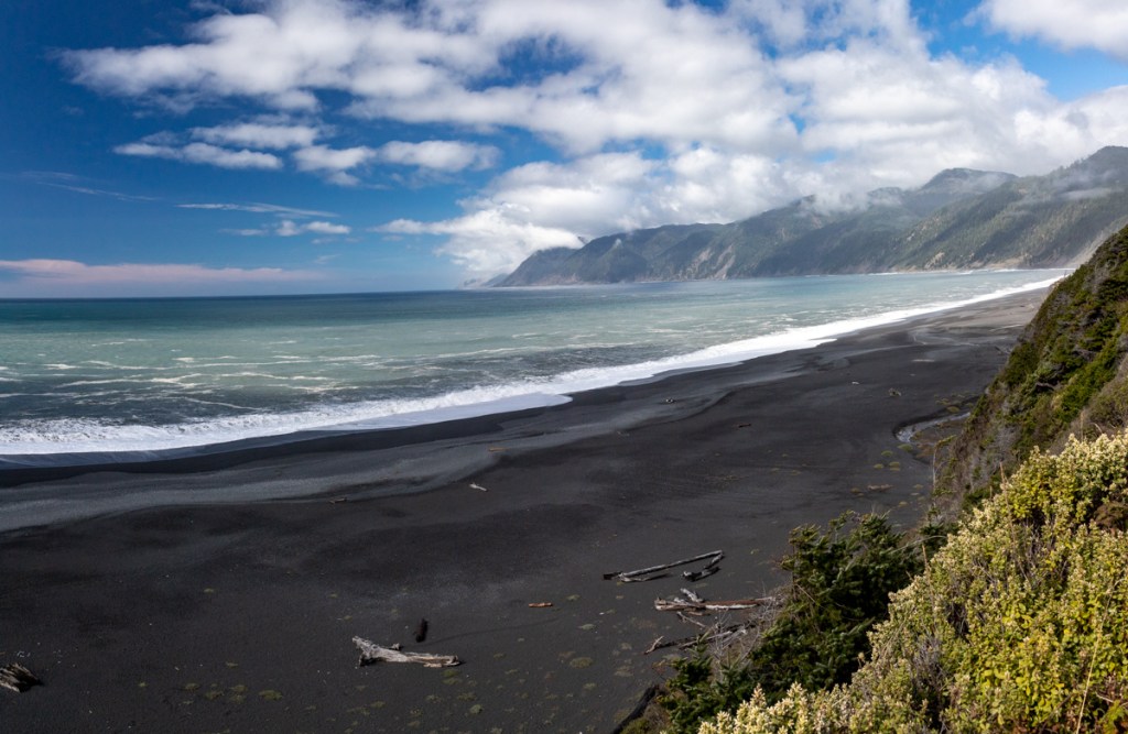 It is a staggeringly beautiful place. It reminds me a lot of the coastline on the western side of Kauai. Huge mountains just plummeting down into the sea. The Lost Coast Trail is a famous hike along the coast here, but it’s quite hard to get a permit. The sand on the beach is very black and well sorted — the grains are all very uniform in nature. For those that are interested, the sand comes from the erosion of a piece of ocean bottom floor that got caught up in the Mendocino triple junction, the place where three plates come together just north of Shelter Cove. It marks the transition from the strike-slip regime of the San Andreas fault to the subduction zone that makes up the Cascades.