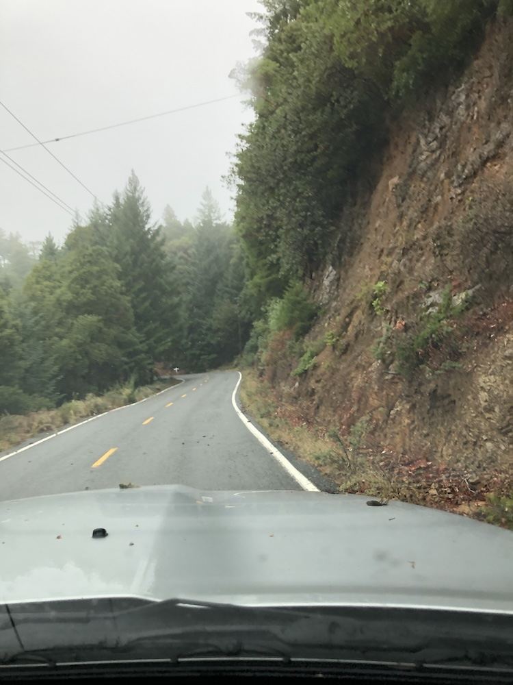 We ended up sleeping in late. Like 8 am. Which for us is REALLY late. There was water still pounding on the roof of the trailer and I think both of us were happy to just lie there in our cozy surroundings. I started to realize that it wasn’t rain, but just water dripping off the trees. Yeah! I took Sadie out for a short walk and the skies were definitely clearing. It was looking like our plan was a success. I chatted with the park ranger, who was very pleasant and told me all about the hikes I could do. There weren’t too many as the state park up the road was closed and the famous Cheatham grove with it. Plus, it’s California — they don’t allow dogs in the state parks.