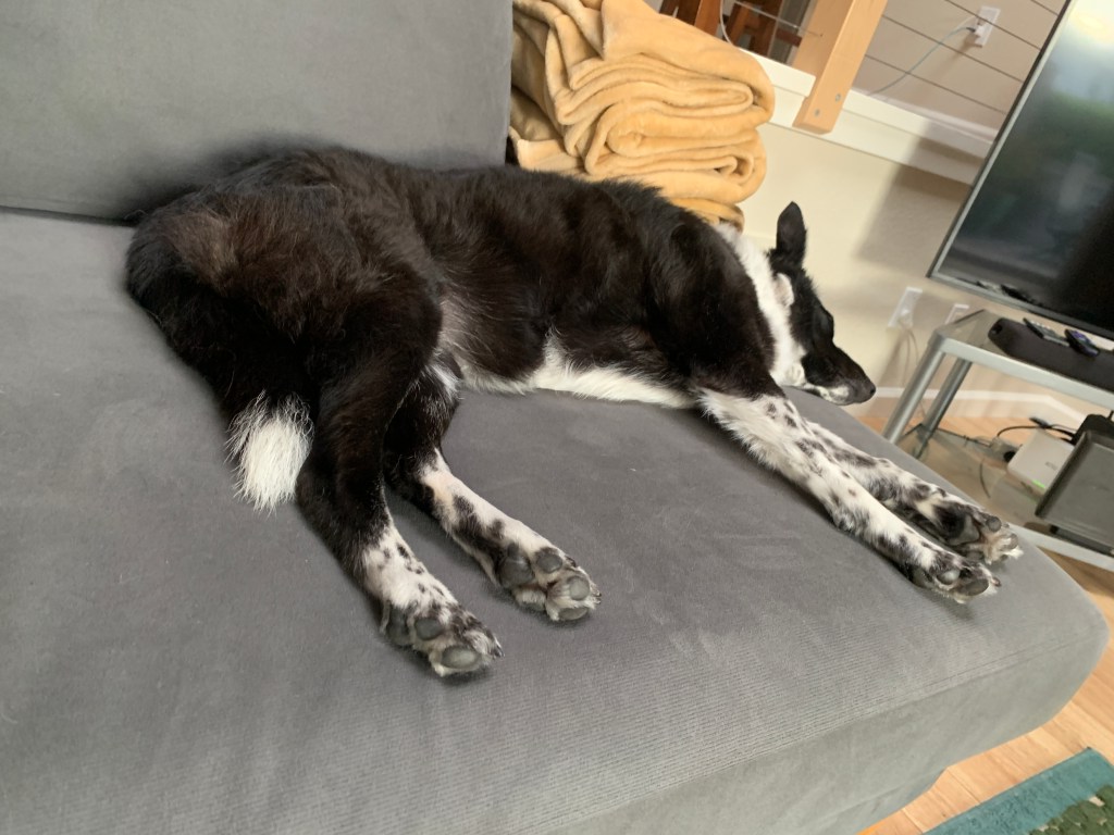 We drove to Gilroy, found the RV storage place, recombobulated our stuff and headed to Aptos. The weather was cloudy but not bad so we headed down to the beach for a walk. Sadie, of course, was happy.