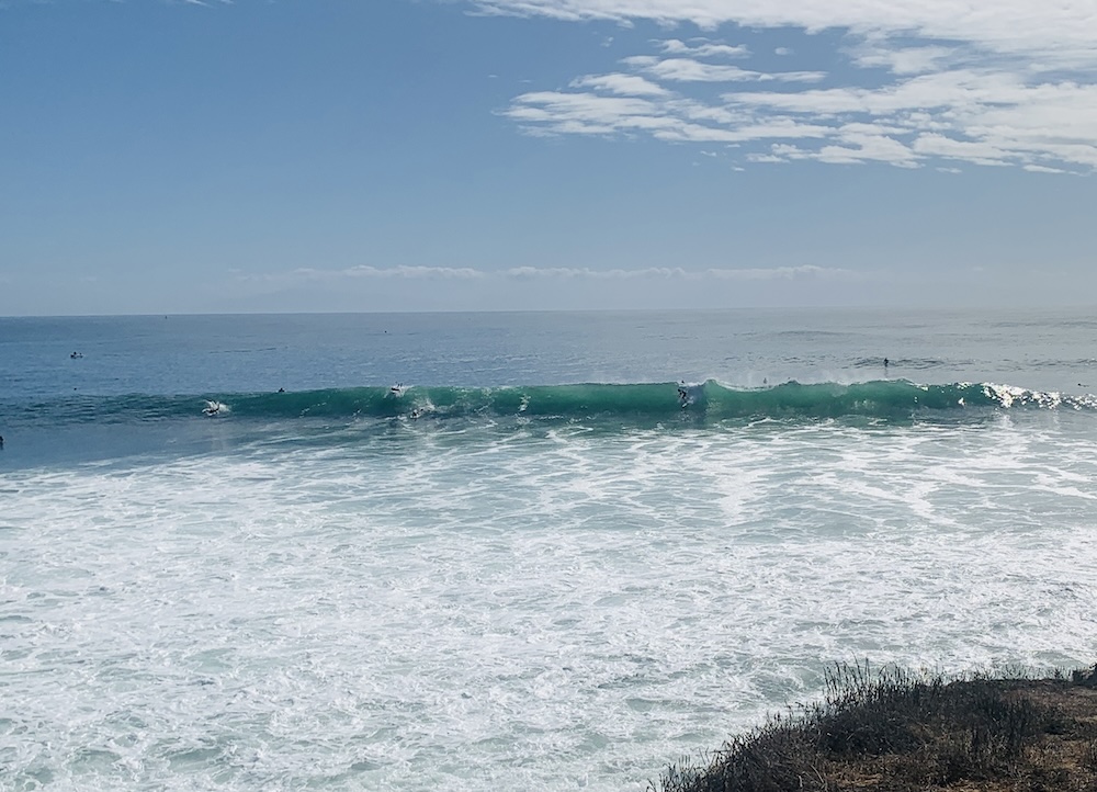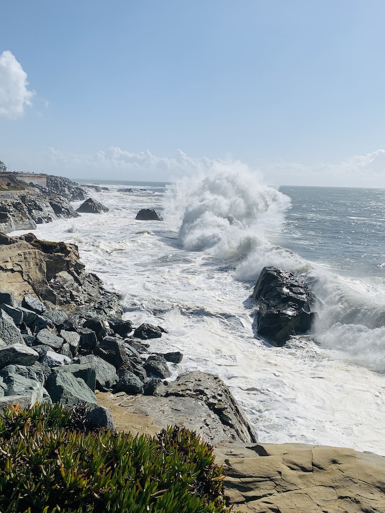 Sadly Jason and Cynthia had to go to work on Monday, so we were on our own. After a wet start to the day, it cleared out and got nice. The swell was forecasted to be 20′ in Santa Cruz, so we decided to go check out the swells smashing into the cliffs. We parked and headed out to the path running along the cliff just north of Steamer Lane. The waves were really impressive. In places it was splashing up over the sea wall which was 50′ or 60′ above the ocean. We just stood there and watched the impressive display of power and turbulence. Every time there was a big splash everyone that was watching would go “OOOOOHHH!!! AAAAHHH!!!” It was fun. There were a couple guys that were out surfing in it. Holy cannoli batman! Those dudes are either (a) really good, (b) crazy, or (c) both.