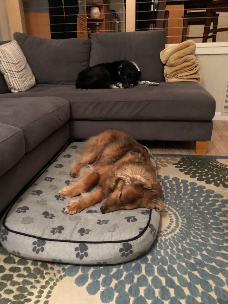 We were a bit worried about how Bodie (J&C’s dog) and Sadie would work out. The biggest issue was that Bodie is an old man and has lost a lot of his senses including his sight. Poor guy. He is unquestionably the nicest dog that I have ever met. Plus, Sadie is a bit of a bitchy bitch at times. We were very diligent and everything went swimmingly well. In fact, on the last night Sadie stealthily went down to where Bodie was and got on the couch. It was super cute.