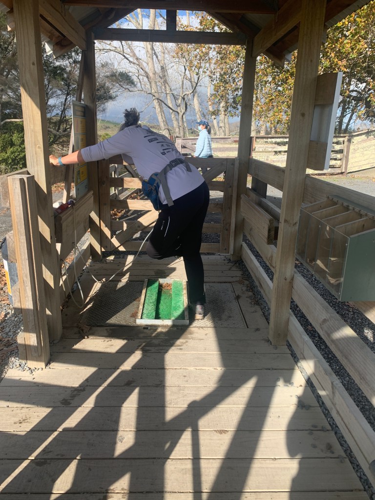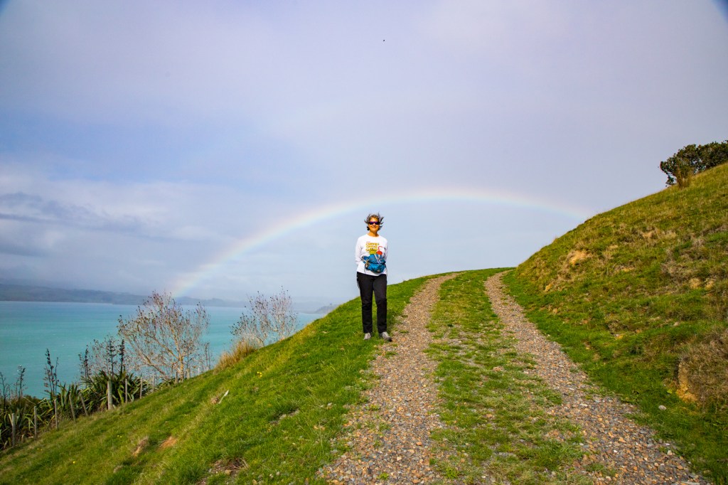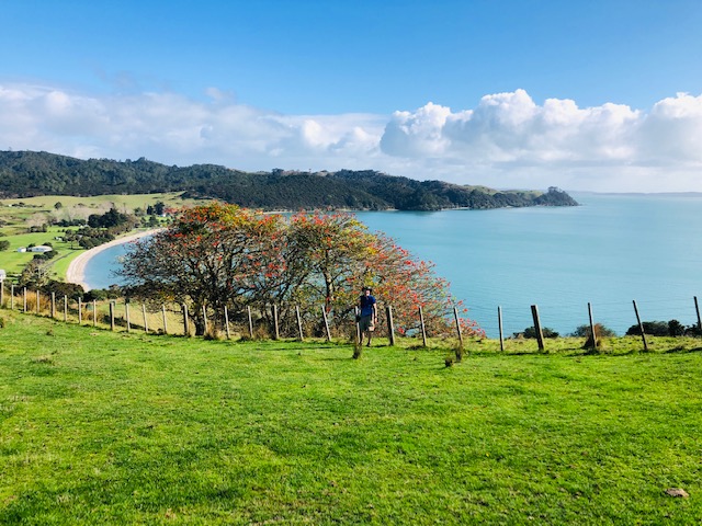 The area is a peninsula with rolling hills and paddocks for sheep. I think there is an experimental farm on the park. There are also a few Kauri trees within the park as well which is nice because they are being seriously threatened by fungus that is killing them at an alarming rate. At the entrance to trail, there is a boot washing station that you are supposed to clean your shoes off when you enter and leave. This prevents or at least slows down the spread of the fungus. When we were in NZ in 2020, up in the Northland, almost all the Kauri forests where closed. Such a sad state of affairs.