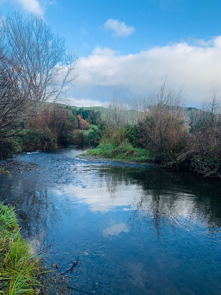 Since both of us are not experts in fishing and the wind was supposed to kick up later, Bryce took us to a beautiful little river called the Waiotaka. We hiked a ways up the river to a couple of lovely fishing holes that he had cleared out some brush for us the day before. It was chilly and my hands were a bit cold. I was battling my Raynauds in a few fingers. Bryce saw me and I told him that a bit too much near frostbite had caused it. In Kiwi fashion he told me I needed to “harden up, mate”. They are a nice, fun, a bit crazy and hardy lot. I guess I’ll have to work on hardening up over the next 3 months.