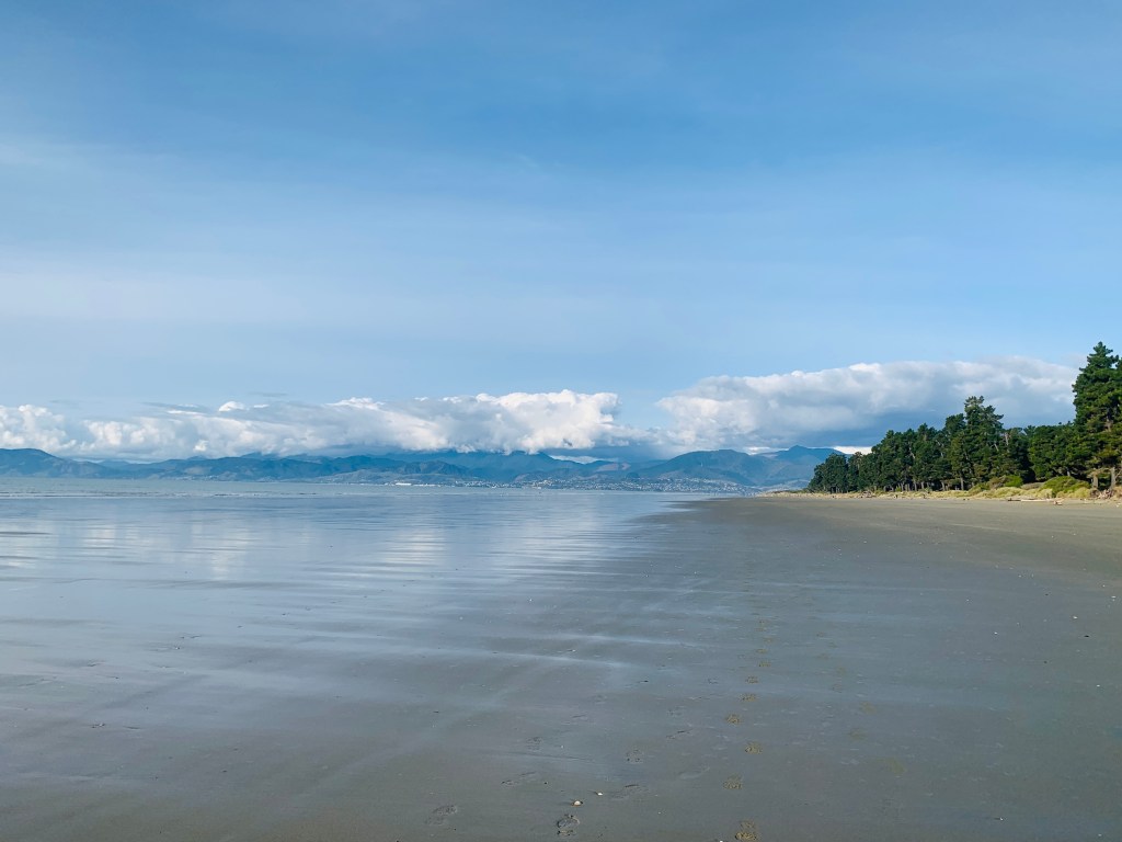 We wanted to continue to explore the beaches in the area, especially because that had been such a downer in Hawkes Bay. We drove out to a place called “Rabbit Island.” It was low tide so the beach was huge. Sadly, no dogs were allowed though, so we didn’t get out usual pets and kisses from the kiwi dogs. Darn it all. The ocean here is extremely calm since it is sheltered from the Tasman Sea by a big gigantic peninsula. It is also very shallow as well which is why the water is so safe and the beaches so big. It was a lovely walk and the views of the mountains surrounding the area are really quite spectacular.