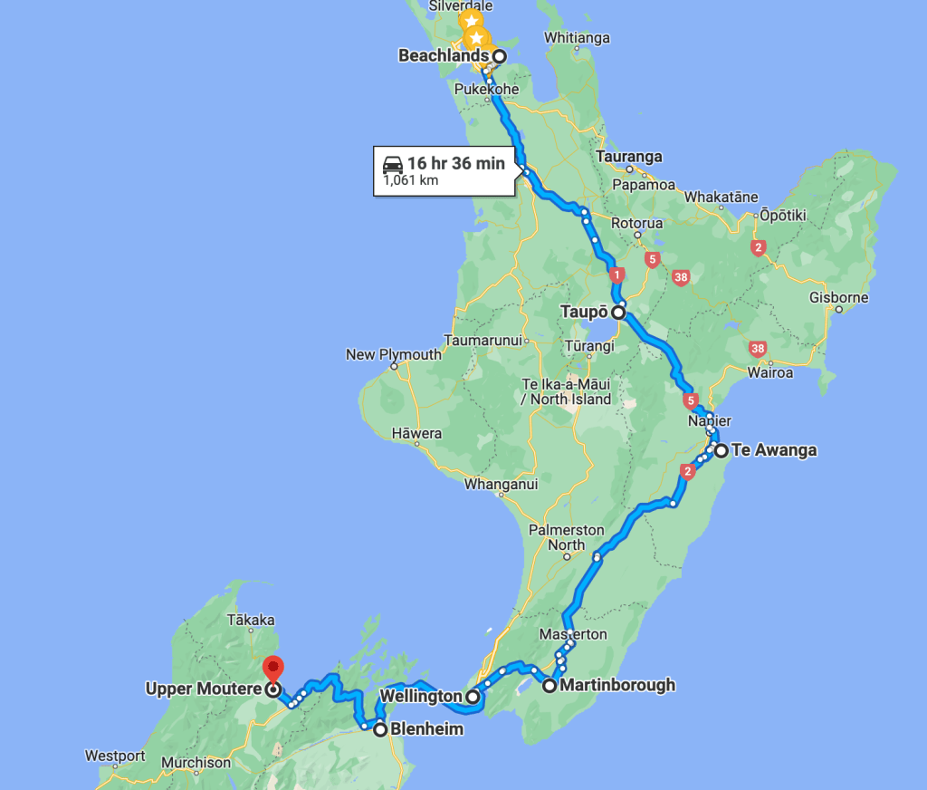 So far on this trip we have come down from Auckland, thru Taupō, Te Awanga, Martinborough, Wellington, Blenheim, and now are in Upper Moutere, in the Nelson Bays Region. Susanne has officially been to both the farthest north and south points of the North Island. In general, the North Island is nice, but I think in the end our hearts will be more aligned with the South Island.