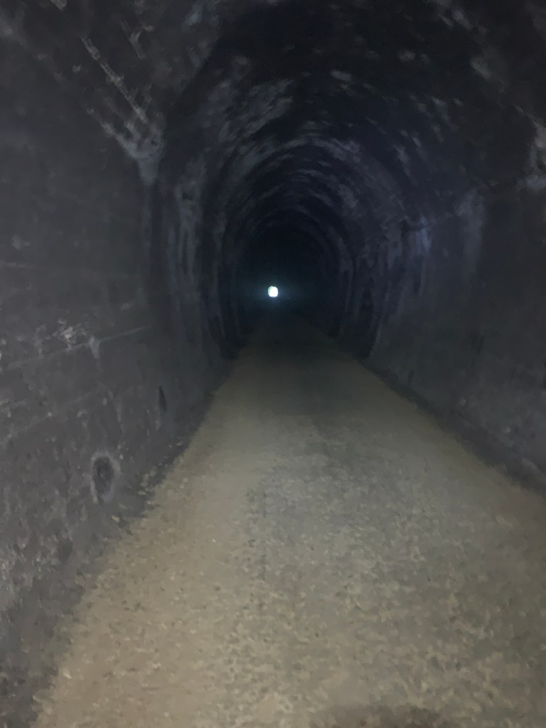 I had to bring a headlamp to navigate through the tunnel. It was kind of freaky as it is long enough that in the middle it is pitch black. It was easy going and clearly downhill now, so that boosted my spirits. I didn’t encounter anyone in the tunnel and came out the other side with a smile. That was pretty freakin’ cool.