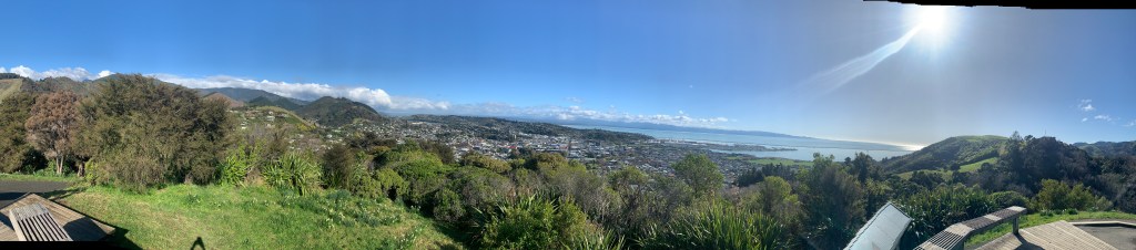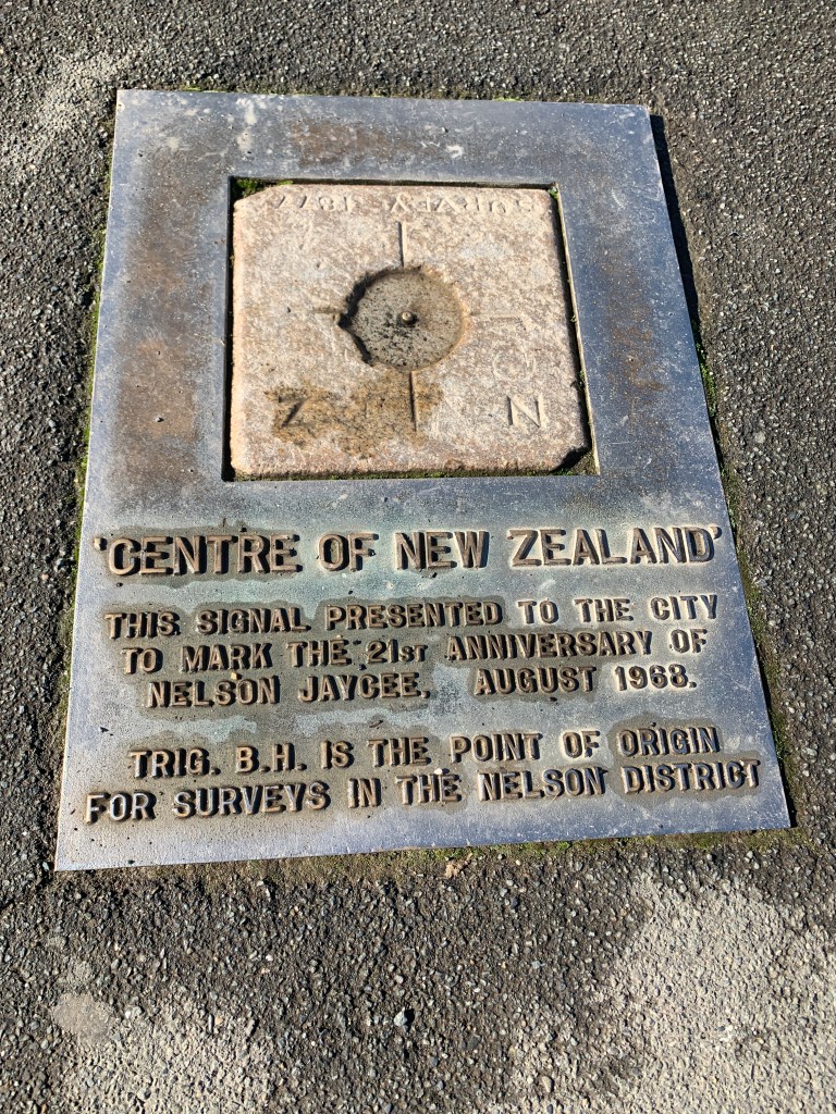 Susanne wasn’t up for a big hike, so we decided we would drive into the Nelson area and explore something around the botanical gardens and just get a different view of things. There is a monument at the top of Botanical Hill called “The Center of New Zealand” which has long been considered the hub of the nation because it was a central survey point in the 1870s. Nelson brags about being the center of New Zealand. However, like almost everything in life, this is not without controversy. In 2019, it emerged that their efforts may have been in vain.