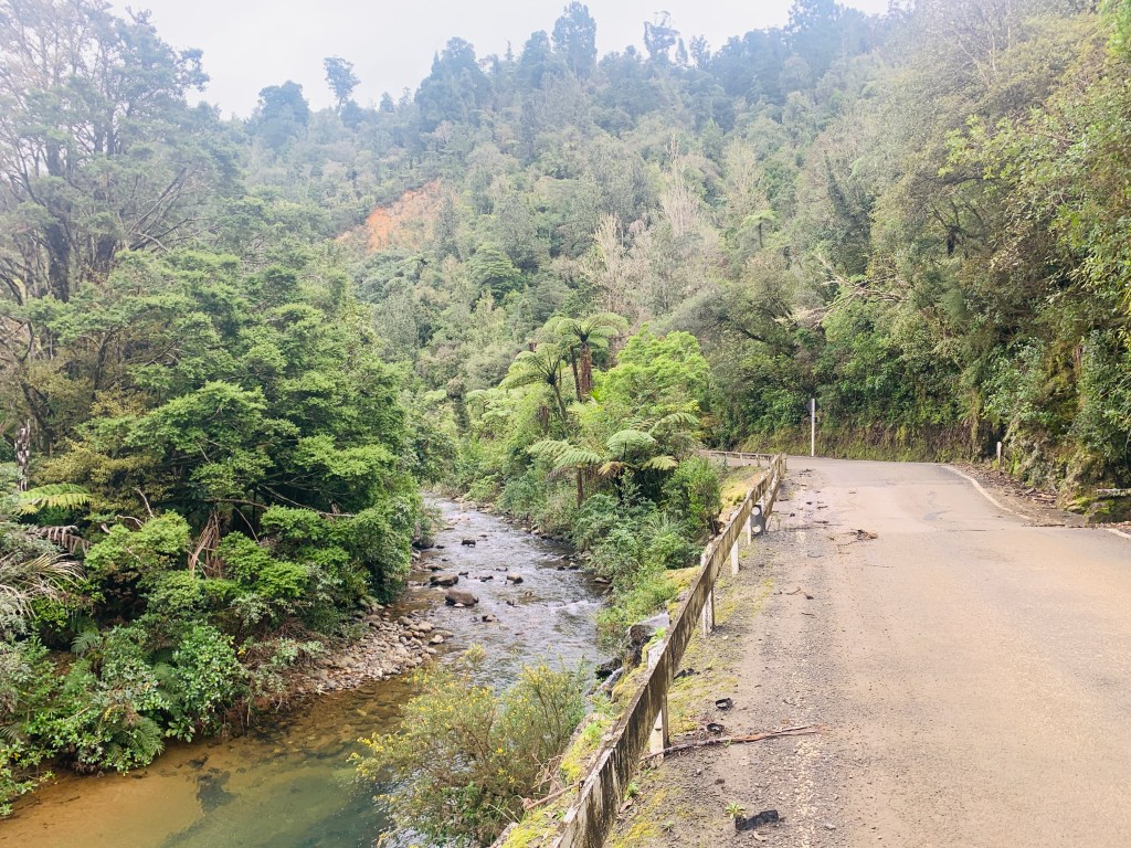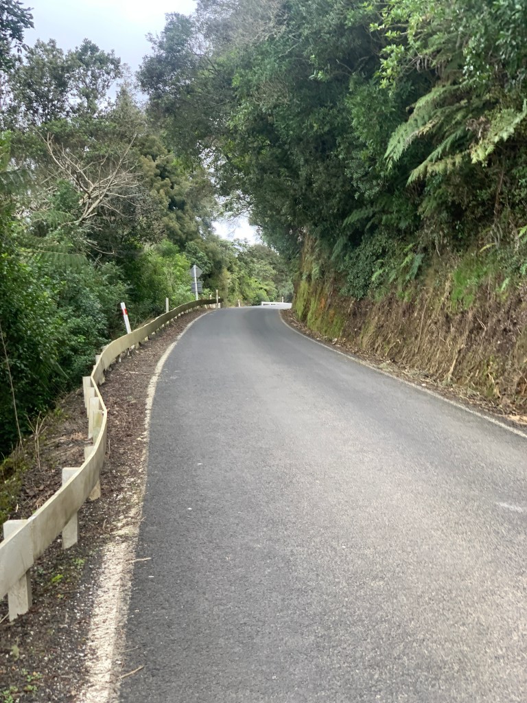 It was about 5 km down the main road to get to Road 309, which was the nice quiet one that cut up over the mountains. It was a bit of a drag, but there was at least a shoulder, so that made it tolerable. I turned off on the 309 road and relaxed. It was a lovely little road that climbed slowly up next to a river. After about 5 km, it turned to gravel. It was pretty dense forest and I just love riding along looking at all the huge tree ferns. I thought to myself “this climb is easy!” which should have been a warning. Just as I thought that, the 10% section kicked up. Oooooph. I should have known.