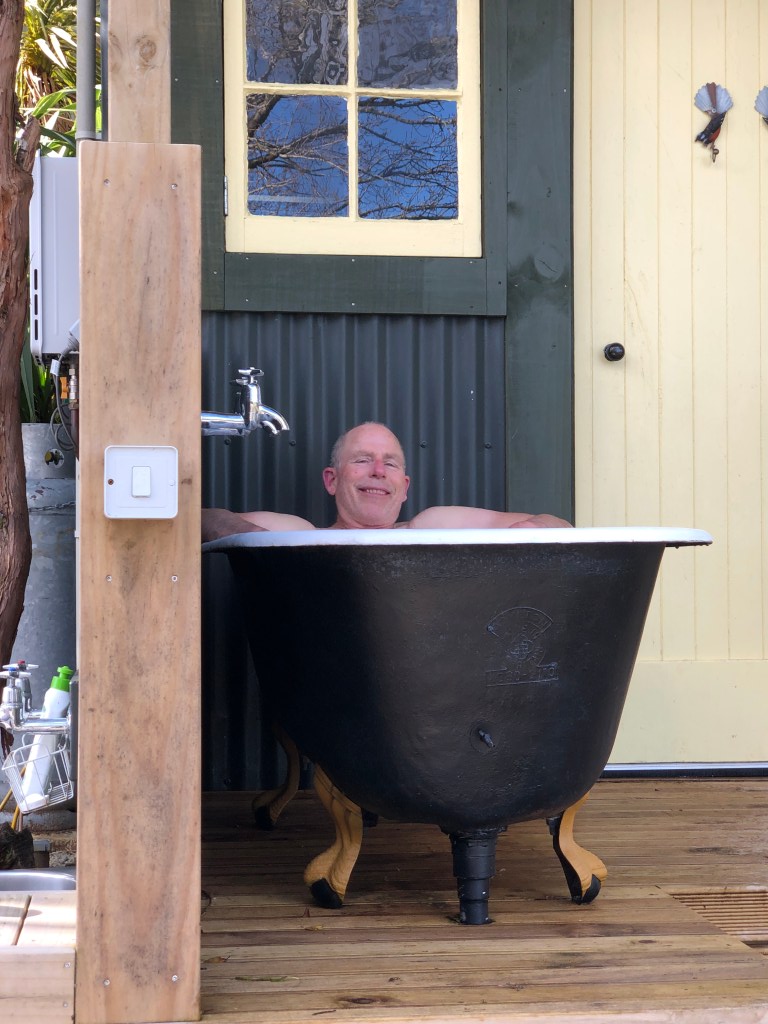 They had an outdoor tub and we both wanted to give that a try. It was chilly outside, and there was something decadent and relaxing about just sitting outside in the hot water watching the world go by. New Zealand is a great climate for a hot tub and we will definitely get one when we finally get a home. All in all, despite it being a bit chilly for glamping, the glamping was pretty nice. If it had been about 5 to 10 degrees (Celsius that is) warmer, it would have been perfect for just hanging out on the deck enjoying the view and stars.