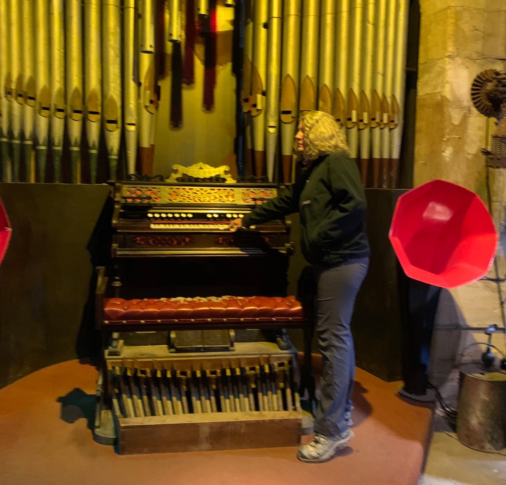 The weather was getting a bit snotty, so we, of course, had to go and tour the Steampunk HQ museum and walk around the downtown. It is a funky little town with lots of art galleries and oddball shops in old Victorian buildings. The Steampunk HQ was best described as totally weird. I mean really weird. Somewhat interesting, but weird. They did have one really cool room of mirrors with colored lights that made the $10 admission worthwhile. We were going to go to the brewery for lunch, but when we went it, it was chockerblock full and a band was playing, which made it super loud. There was nowhere to sit, either. We bailed on that idea and went to the end of the harbor area to a restaurant called Del Mar. It had a great view and the pizza was quite yummy.