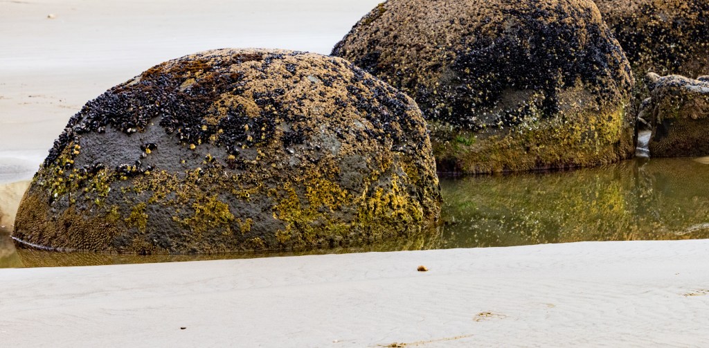 The boulders are giant concretions formed by the mineralization of the mudstone in the formation. Think about how pearls are formed and that is a good analogy for these. Definitely worth a stop. We checked out the boulders and then did a nice walk up the beach.