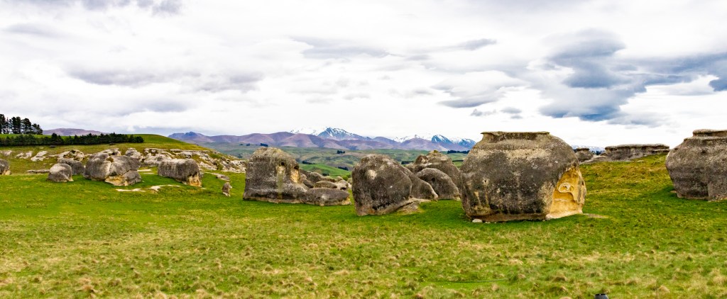 We have learned that when the weather forecast is iffy, you just have to plan some smaller outings and hope you get enough good weather that you can enjoy the day. Susanne had finally decided it was time to get a haircut after 5 months. My detailed description of the benefits of shaving your head seemed to be unconvincing as she made an appointment with a stylist here in Oamaru. The woman told Susanne about a couple cool places to check out. One was called the Elephant Rocks out near Ngapara.