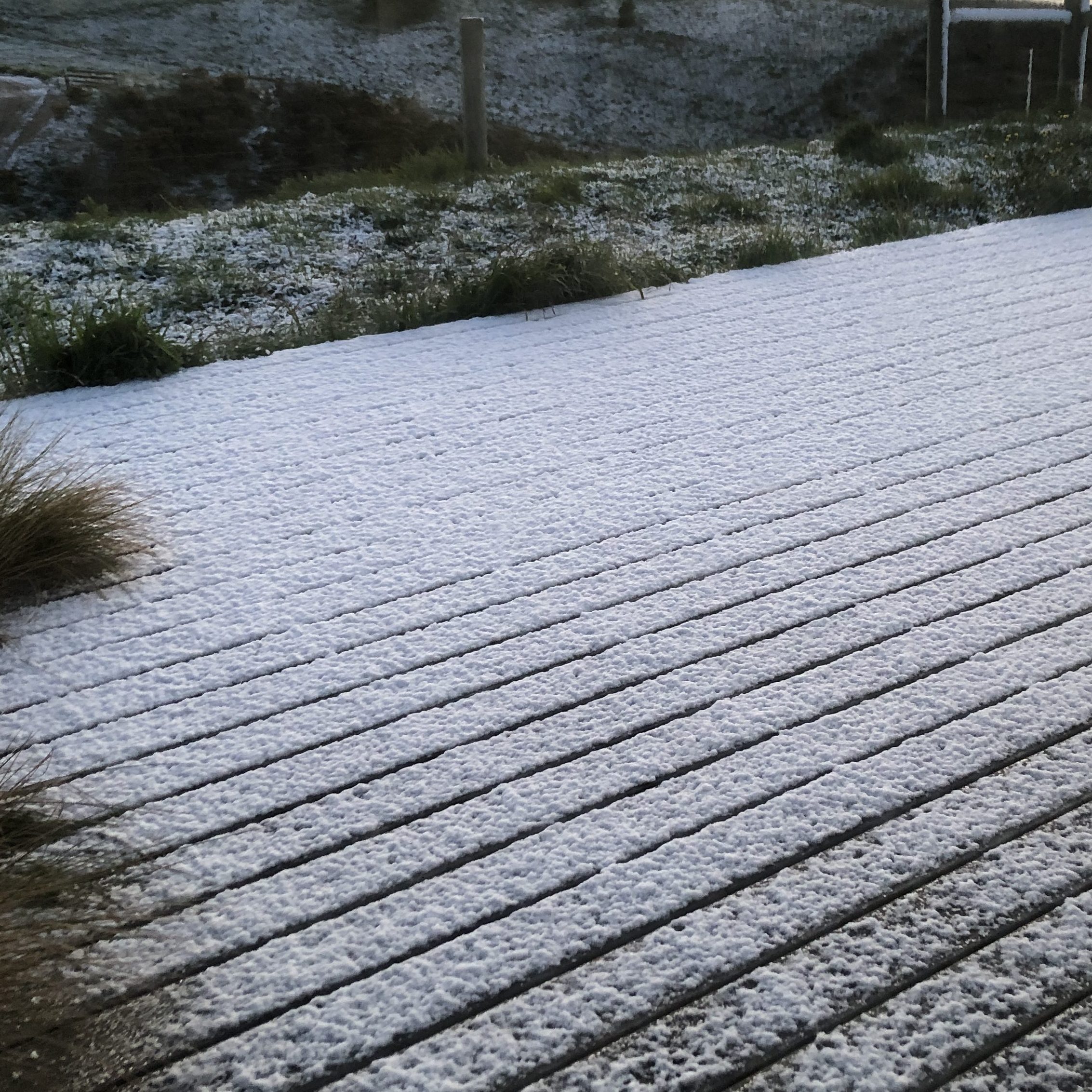 The full force of the Antarctic blast showed up overnight and we actually had a bit of snow on the deck. Holy crap. We are both very tired of winter. We have been living in winter since December 2021. We want summer! We want summer! We want summer! We want summer! Bella ciao, bella ciao, bella ciao, ciao, ciao!