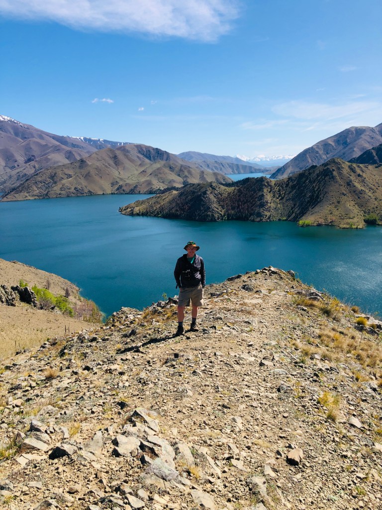 It was a really nice day, so we decided to drive westward to Lake Benmore where there were a couple of hikes. I wanted to get a sense for what that area was like as it was starting to get into much more alpine terrain and was only an hour and half out of Oamaru. We parked at the Benmore Peninsula Loop track trailhead and headed out. It is a shortish hike and is also right where the Alps2Ocean passes by, but the reviews said it had great views. The Alps2Ocean section looks like an amazing stretch of that trail and I will definitely have to come back and ride it! The first part of the hike is just OK because you are staring at the big dam.