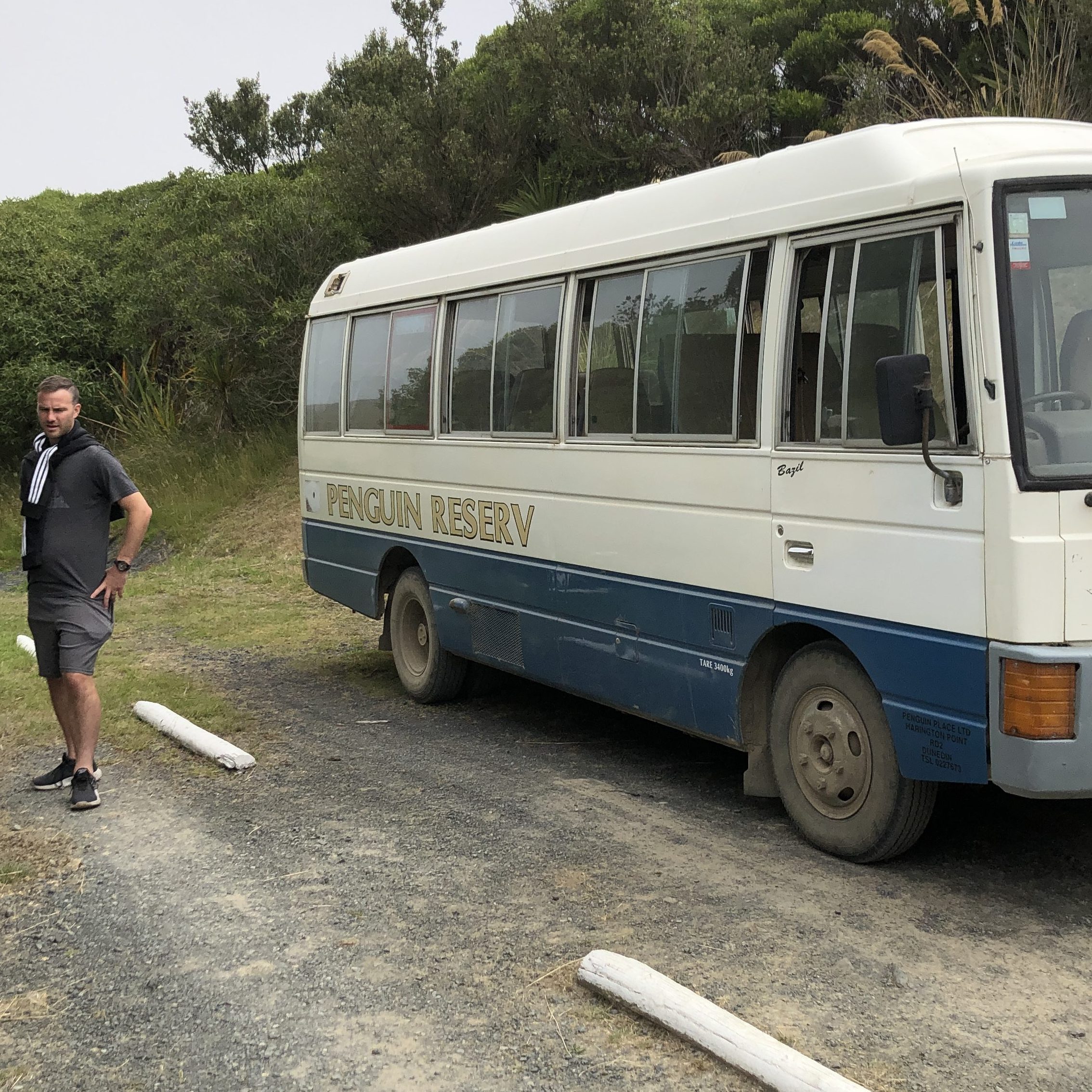 After the rehab facility we piled onto an old Nissan bus and headed out to where the penguins live in the wild. The yellow-eyed penguins are really shy and seeing anyone at all can disturb their usual schedule, so they have built some really cool tunnels and blinds throughout the area so that they can observe the penguins without disturbing them too much. We saw one mamma with two chicks while we were out there. They were a long way away, but it was still cool. Both Susanne and I commented on how amazingly lucky we were to see them so close in Oamaru. We even showed the video to the guide who thought it was amazing as well.