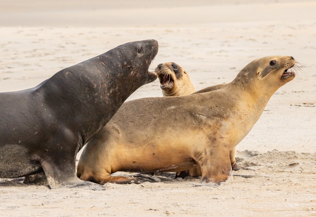 Right away there were a number of sea lions sleeping on the beach. Super cool! I pulled out the 70-200 mm lens and started to take some pics. A guy headed back up to the car park pointed and said “here comes a big male.” Sure enough, from behind us was a huge sea lion heading, or what appeared to be, straight toward us. It was very impressive to watch.