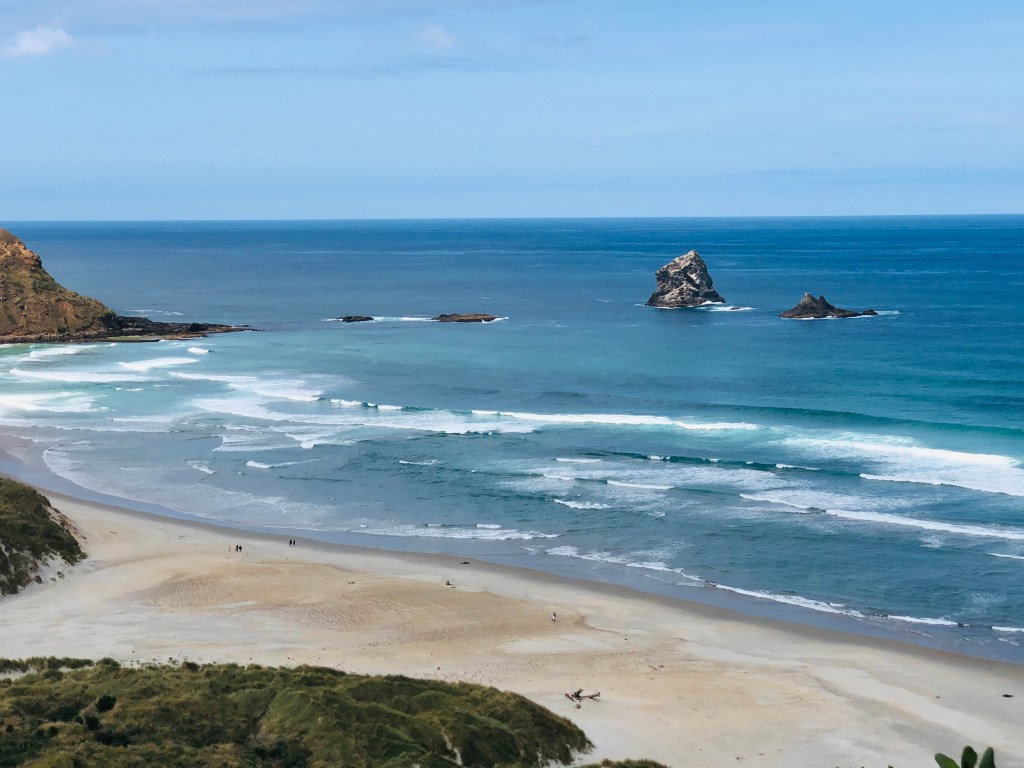 We drove down the road to the car park, which in itself had a lovely view of the ocean, gathered our stuff, and headed down the trail toward the beach. The trail down was pretty steep and sandy once you got past the lookout. You could see sea lions on the beach.