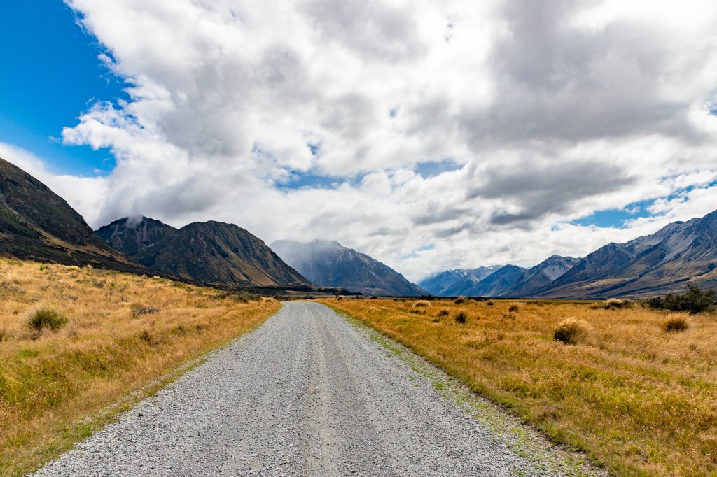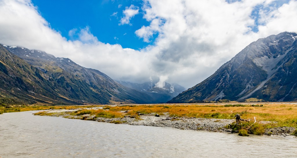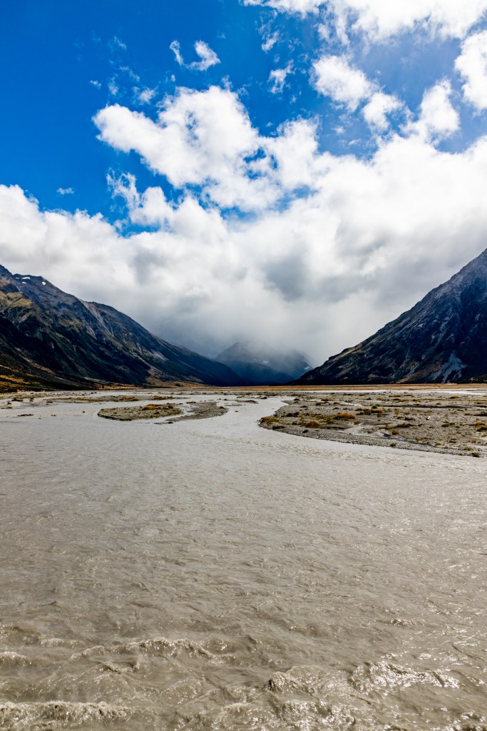 You hike this valley back about 30 miles and get into the high mountains where Mt. Aoraki is located. There are a bunch of huts along the way and numerous valleys you could do hikes into. I guess a lot of people ride their mountain bikes up the road and stay at the huts; that seemed like fun!