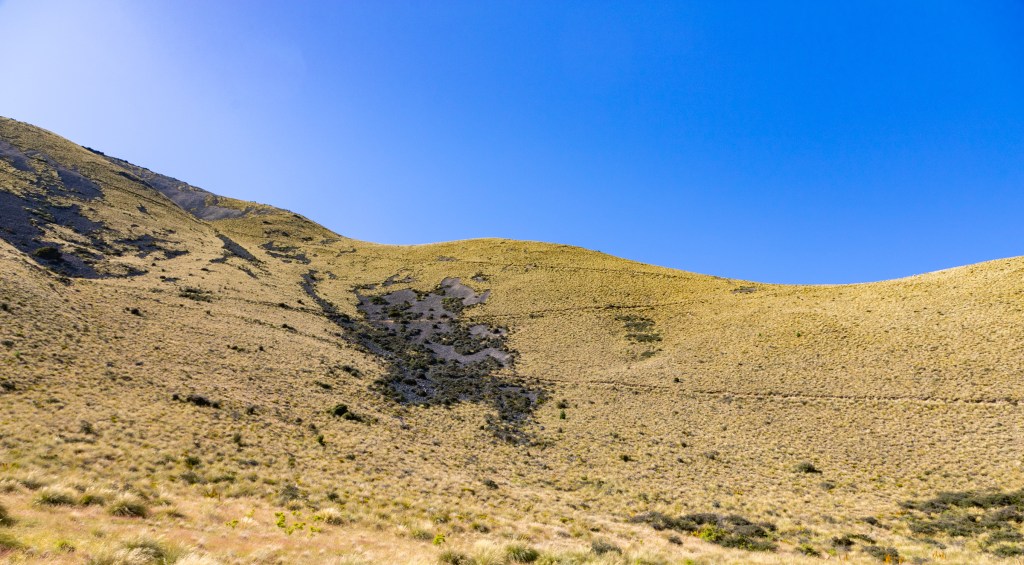 At about 2400′ of climbing and with about 300′ of steep climbing left, Susanne decided to pull the plug. It was just too hot and there was no need to suffer. I always appreciate that she is very smart about that. Heat exhaustion can come on quickly and you can go from “fine” to “in trouble” in no time. I decided to continue on and do the climb to the top of Ben Ohau.