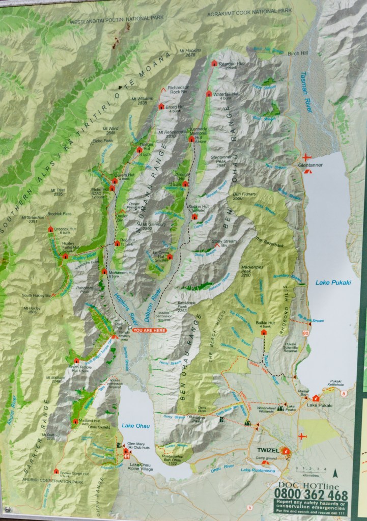 Greta Hike: We had heard from the Facebook group “Tramping in New Zealand” that the Greta track was one of the best in the Lake Ohau area. We picked a day when we knew the weather would be good and targeted the hike for that day. It’s a pretty big hike (10 miles and 3000′ of climbing) so we wanted to get started early since it was supposed to be pretty hot.