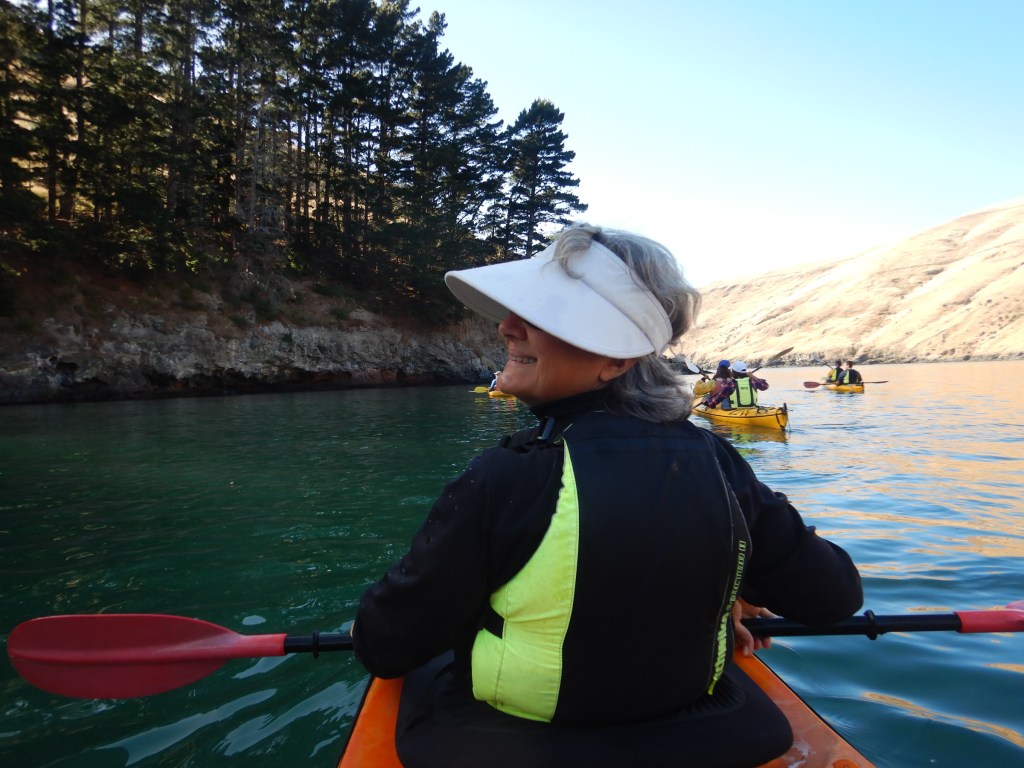 We walked down to the kayak shop where they would drive up and over to the bay on the same road I had ridden the other day. Viola checked us in. She was from the Czech Republic, had lived in New Zealand for quite a while and was truly hard core. White water rafting, kayaking, hunting, fishing, hiking, mountain climbing. She looked tough as nails. And she liked to talk.