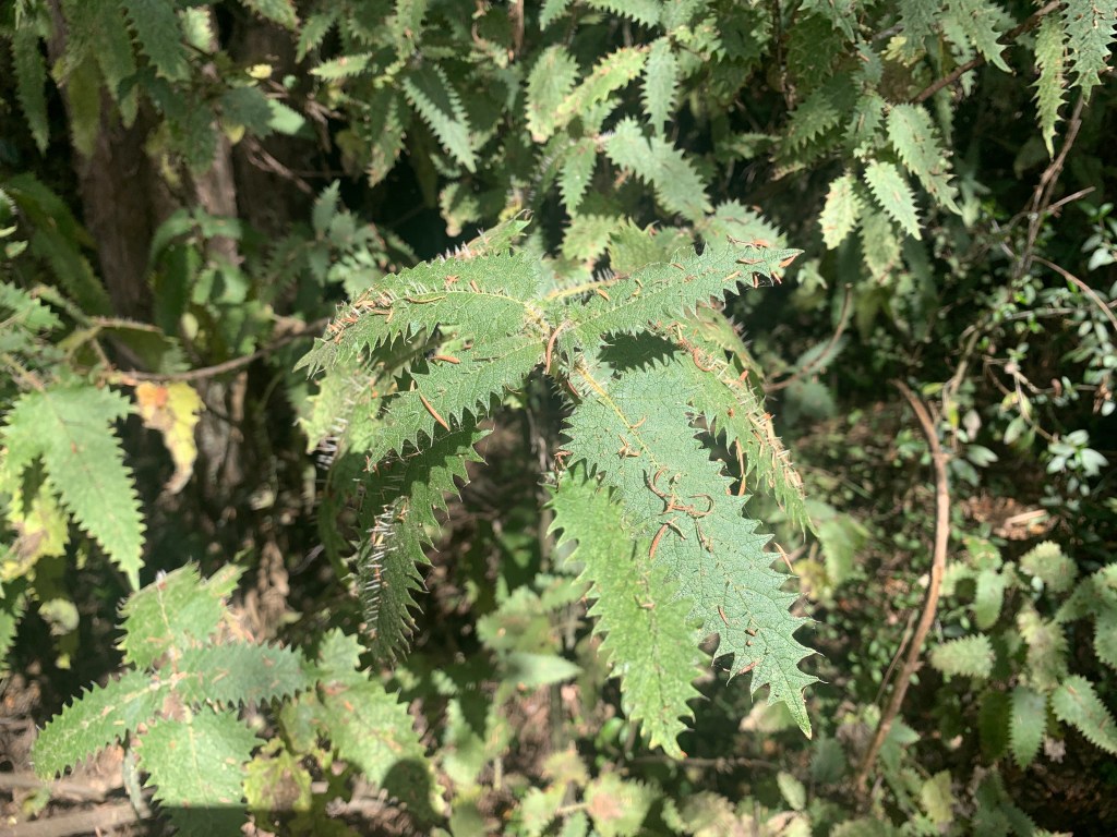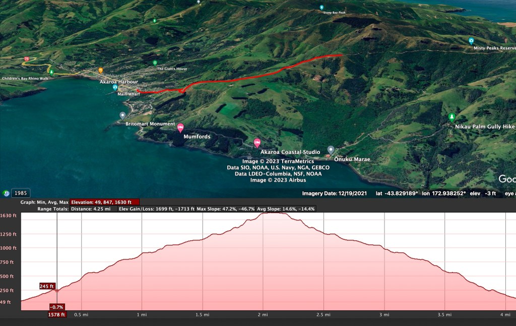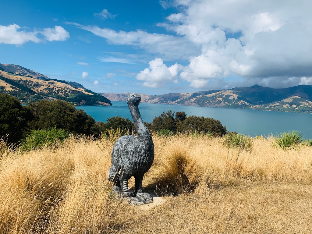 Susanne had read that the trail was a bit overgrown and there was a bunch of stinging nettles along it. For most of it, we kept our eyes out but didn’t see any. After looping around to the moa sculpture, the trail hit the overgrown part and the nettle was everywhere. Thankfully we did not touch it. Although there are not many nasty bugs and beasts here, many of the plants seem to have a bad attitude—thorns and nettles abound. After navigating the nettles, we dropped down to the beach and made our way back. All in all, it was a very nice hike with great views, but I would skip the loop-through-the-nettles section next time.
