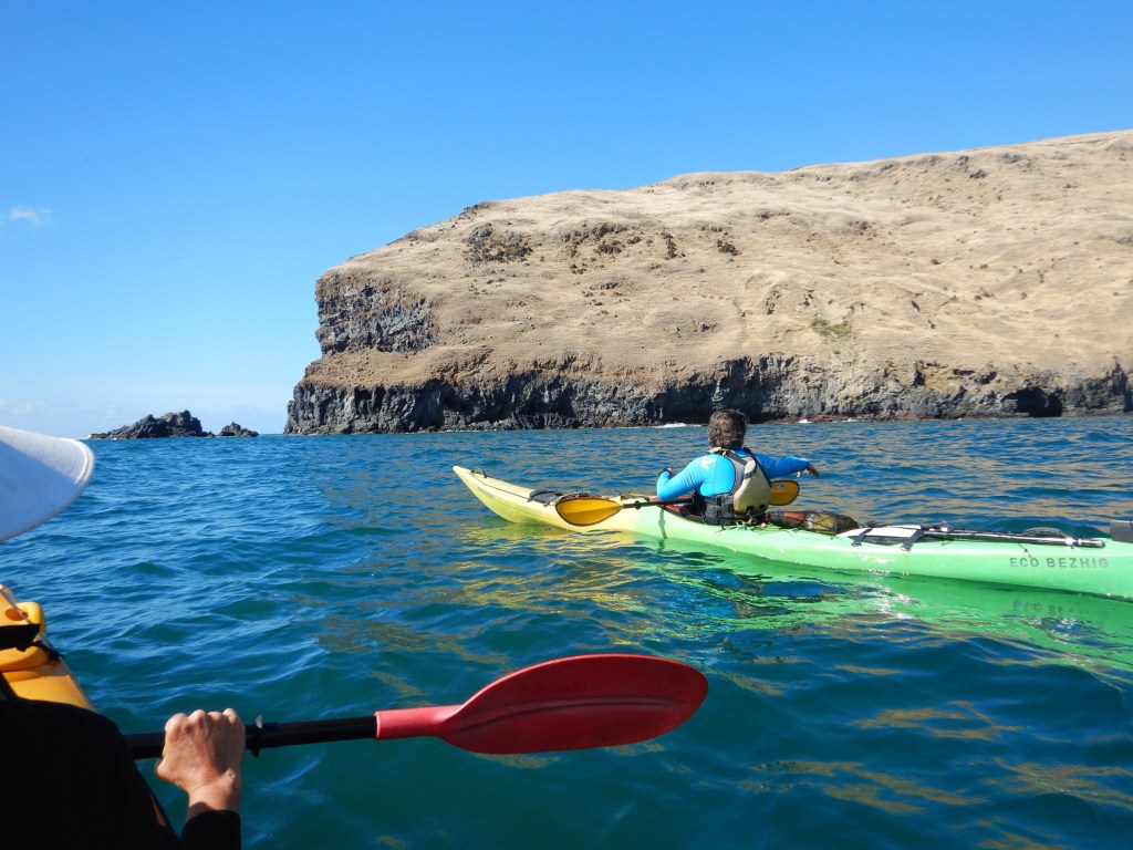 We got the briefing and finally pushed off the beach. They didn’t end up splitting us up because I think Susanne and I were the only ones that had the ability to go outside the bay and they didn’t want to leave such a big group with one guide. Oh well. We paddled along the east shore … well, it was more floating with the occasional paddle. The pace was leisurely, to say the least.