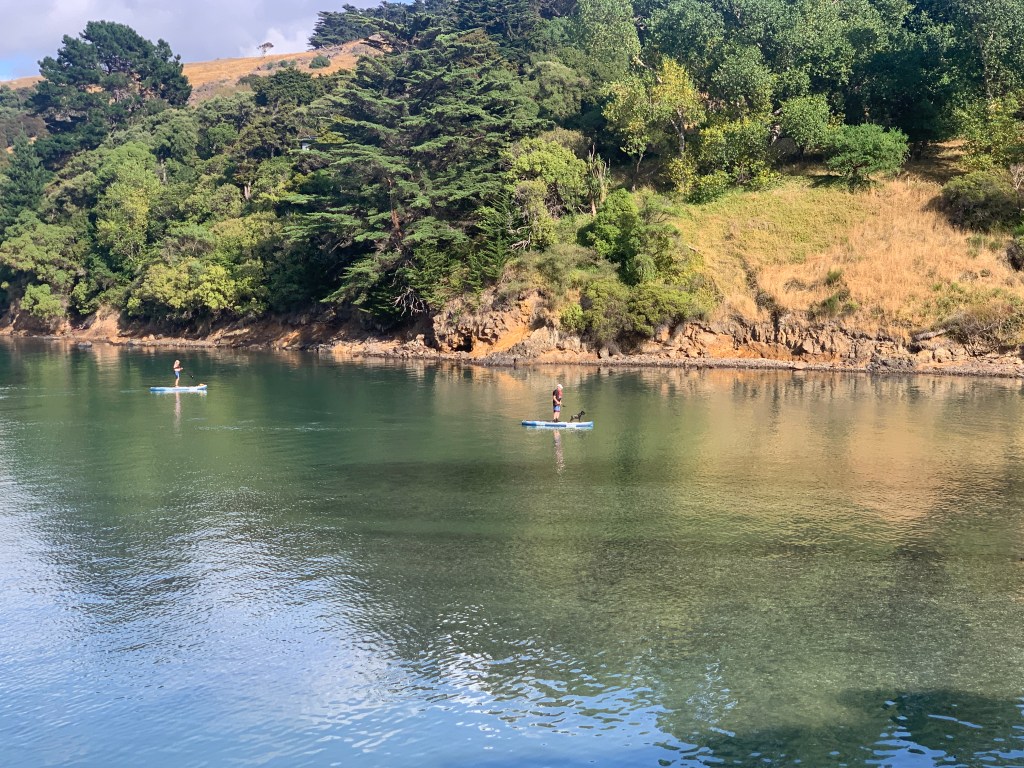 Children’s Bay: After concluding that we were both feeling lazy, we had coffee and lounged and stared at our stuff for a while before heading out for a hike. Susanne had scoped out a pretty easy one called Children’s Bay which was about an 8 km loop without too much climbing. As we were walking toward the trailhead, we saw a couple of people out on their SUPs with their dog. I just think that is the coolest thing.