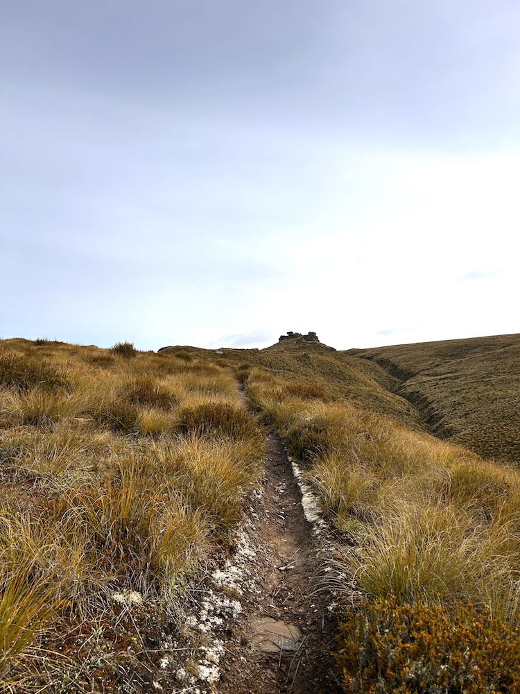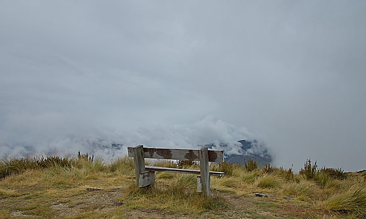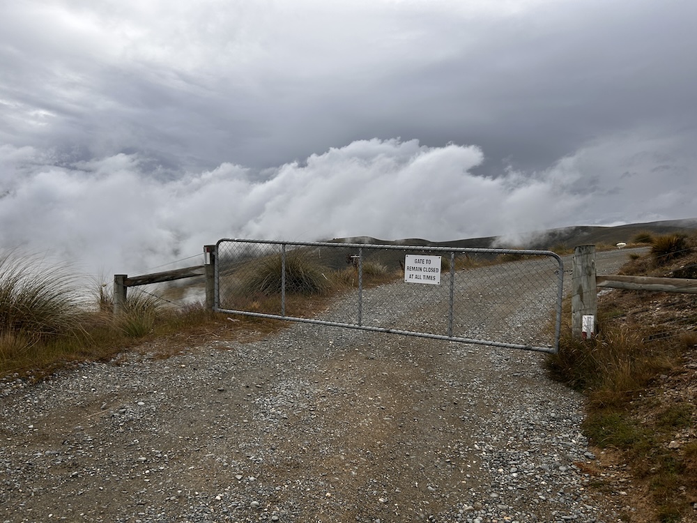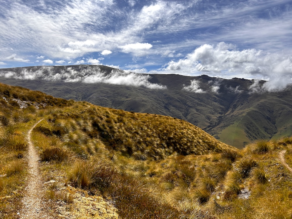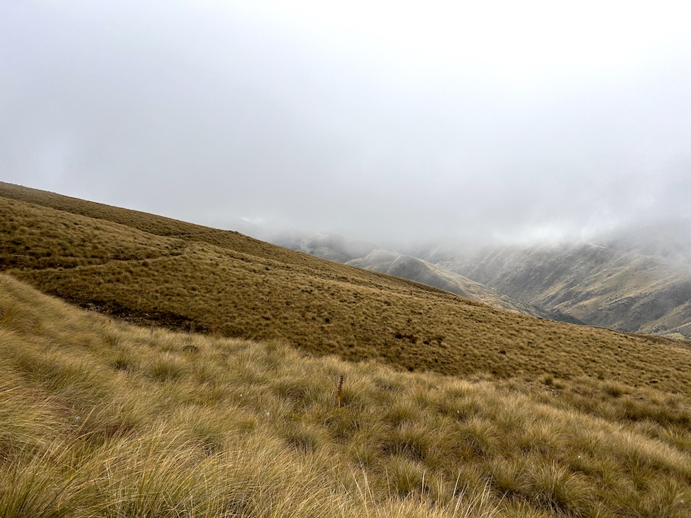At the Garston hut, I repacked my things to take with me to the Slate hut. It was not raining yet, but you couldn’t see much other than clouds. After futzing around trying to decide what to bring, I did settle on my camera with the hopes of getting some astrophotography the following night. I wasn’t very judicious, so the pack was heavy. I thought the ride was going to be pretty flat.