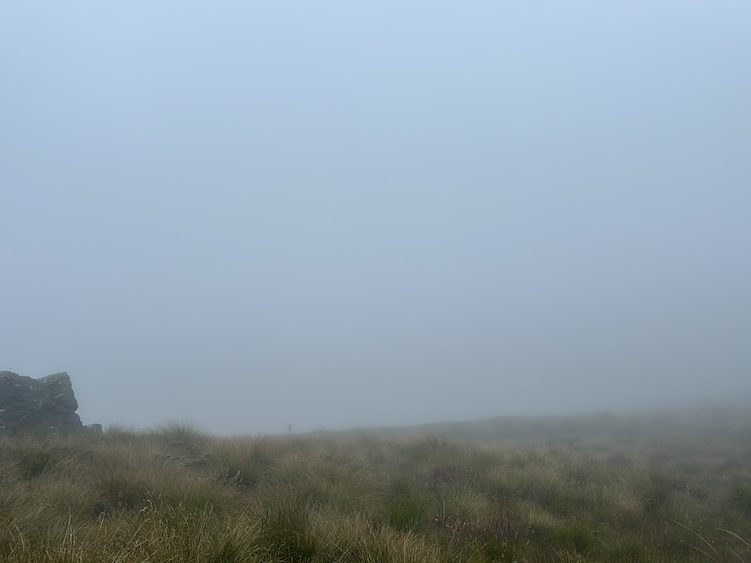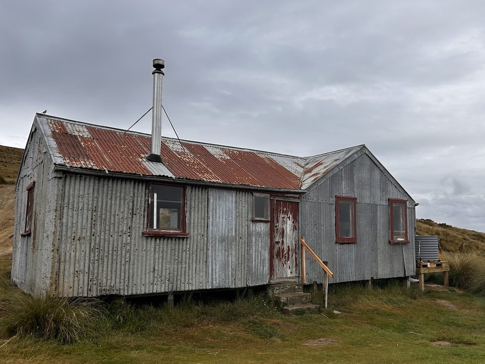 Turns out, it wasn’t all that flat and was a bit tricky to navigate with a big heavy pack on my back. About 1 km into the ride, the fog moved in and it was absolutely pea soup. I couldn’t see a thing. I kept going and was getting a bit crabby with the experience as now it was raining and I was sure I should be at the hut. I crossed and road and saw two hikers a little further down. I had to traverse and tricky rocky section and then finally got a glimpse of the hut. I got there around 1:30 pm.