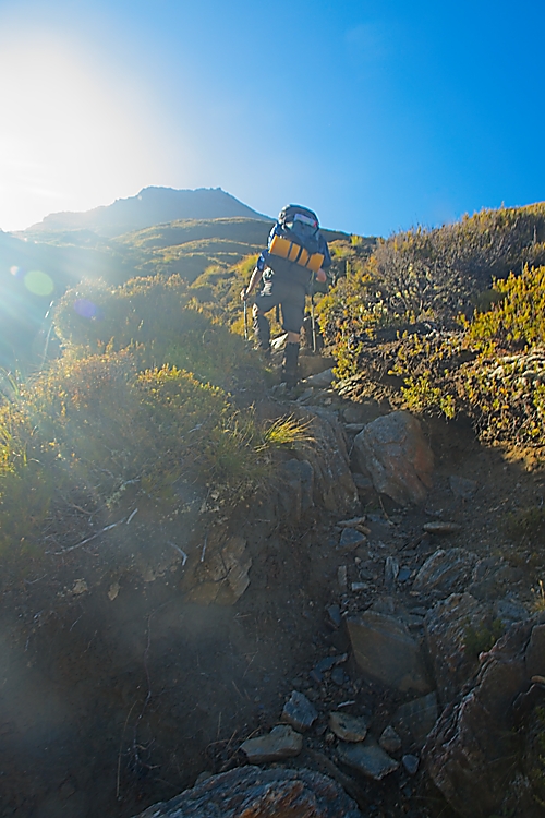 We got going early again. It was supposed to be the “easy” day, although it was still 18.5 km. I could tell my body was really starting to wear out and I just wasn’t recovering enough overnight. It was my 8th day in a row of pretty hard tramping and my body was letting me know about it.