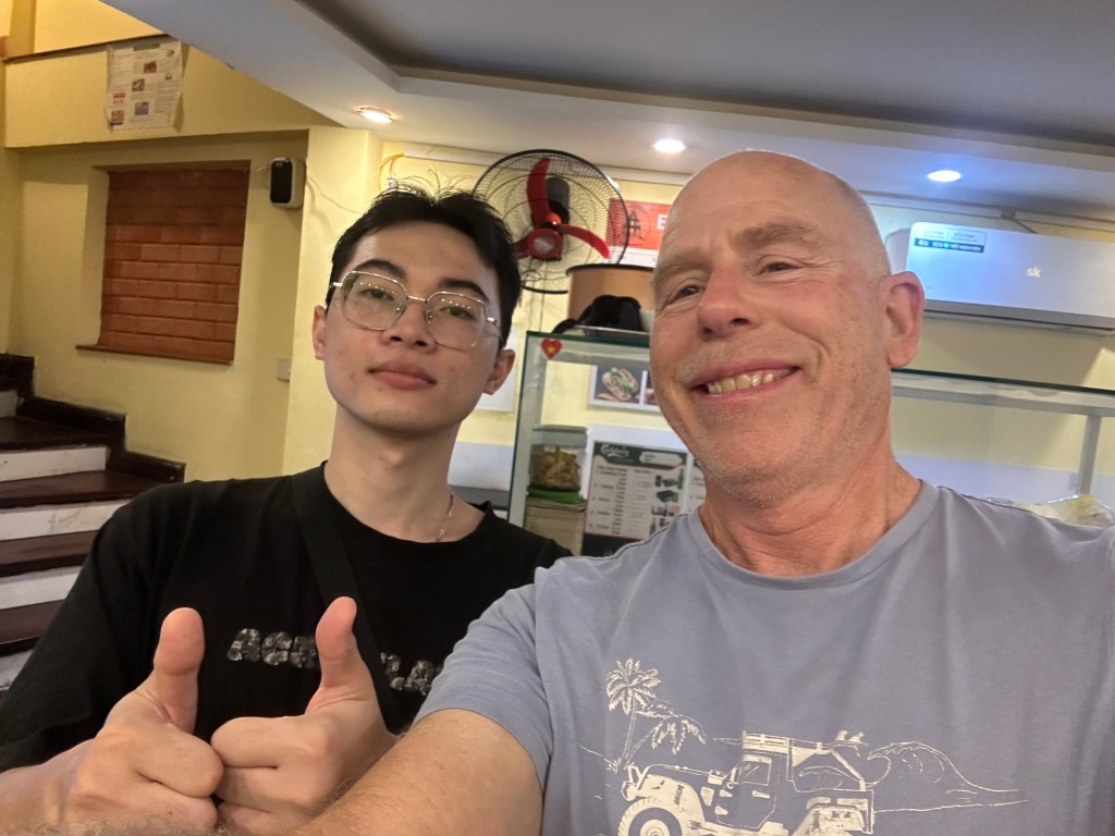 It was about a 25-minute walk to the office where the tour started so I headed out a bit early since I didn’t know my way around. It wasn’t all that hot, but super sticky and humid. It must be ungodly hot in the summer here. After a few missed turns in the Old Quarter, I found the tour office and a very cheerful chap, Long, greeted me and told me 2 other people would be joining. I waited a while and then he said we would meet them at the first restaurant. So we started to head out. Then he said they wanted to change to the 5 o’clock tour, so he told me to wait and disappeared back in the office. He came back and said the boss said “no can do” on the switch-a-roo so we would meet them. Off we went.