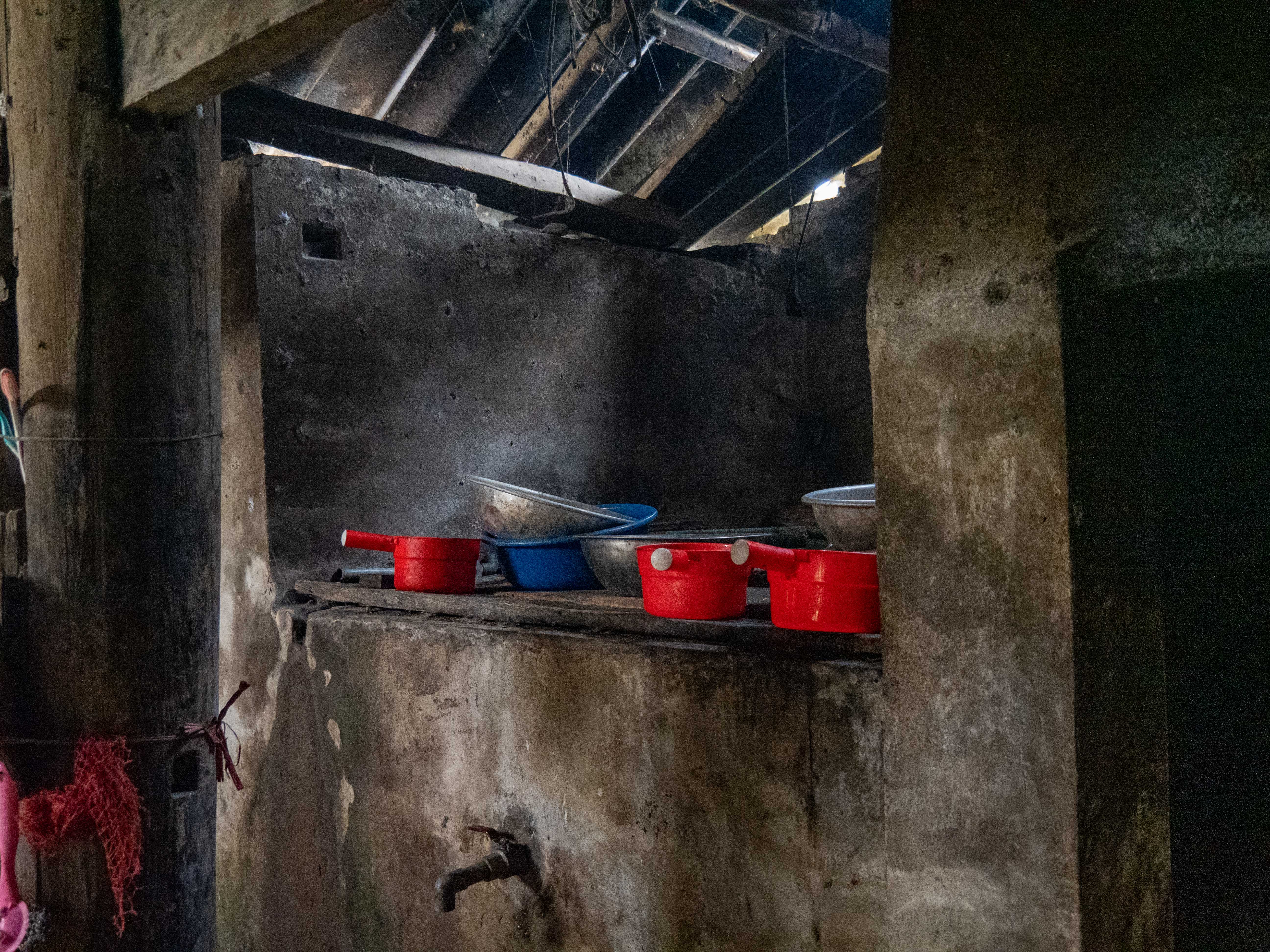 The back room contained the cooking area, rice storage, washing area and general storage. There was a fire going and it was all pretty dark and smokey. It was well kept and spoke to a very simple life.