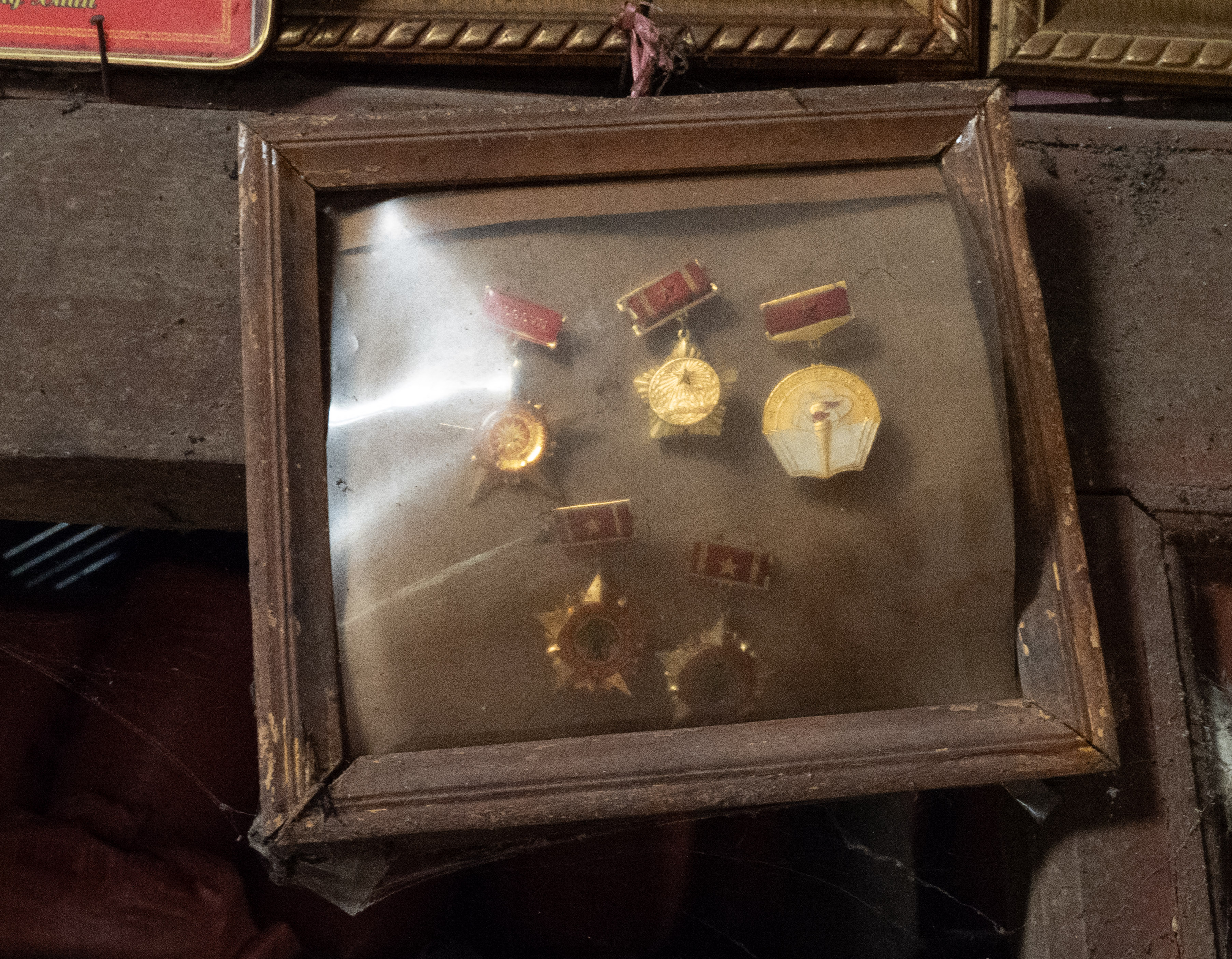 This woman greeted us and Thao talked with her for a while and then she invited us in. It was a decent sized place with two rooms. In the front was their bed and their altar for prayers and with a few pictures from their life. I didn’t want to take many photos in that room as her husband was clearly gravely ill and in bed. He had been in the military and had a number of medals hanging on the wall. It was a bit uncomfortable.