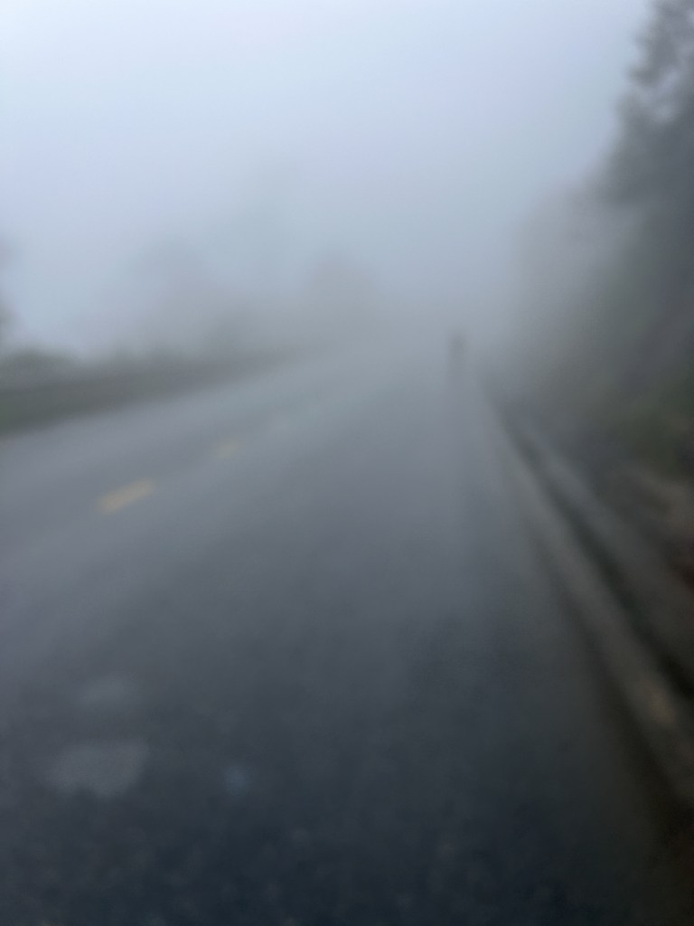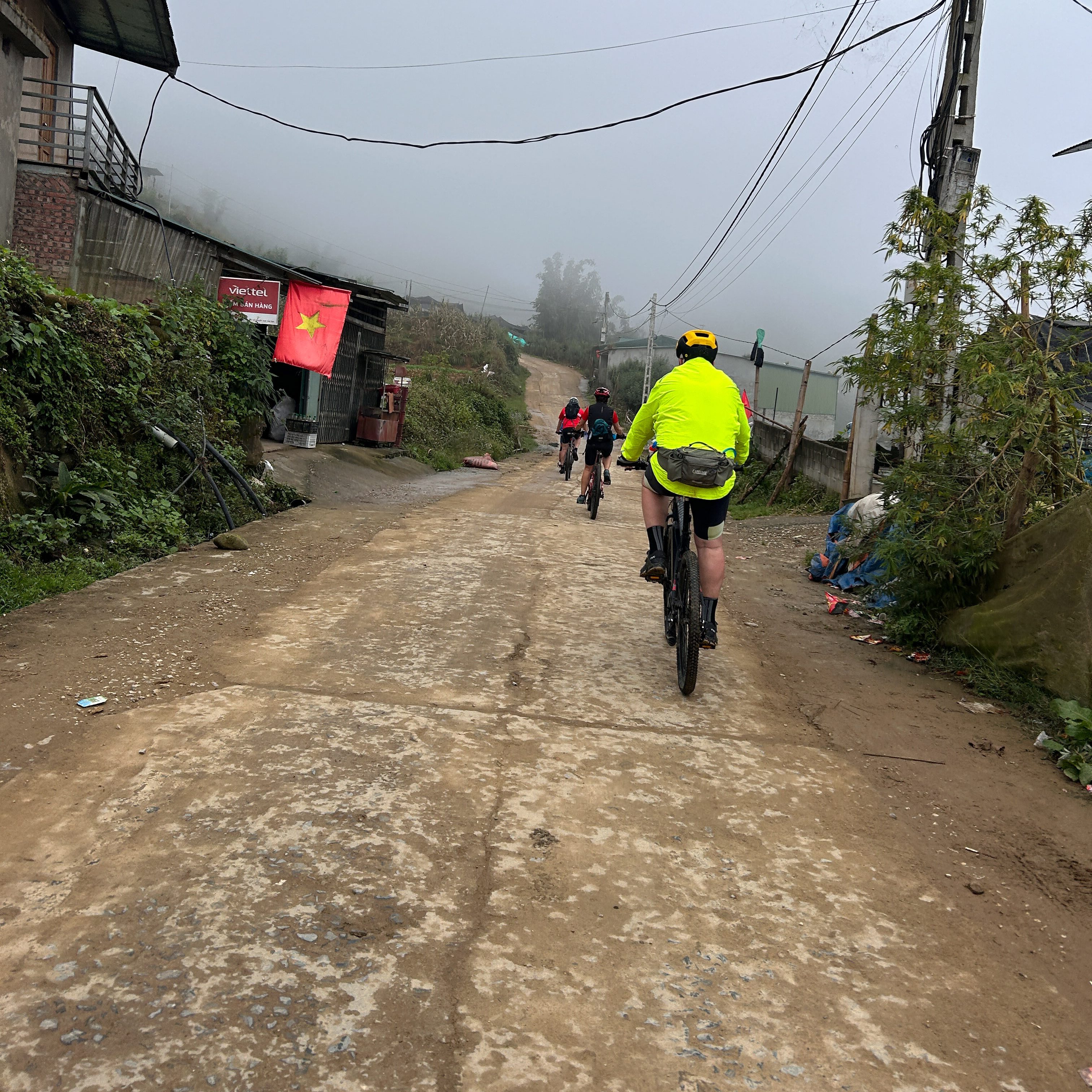 We finished riding down in the villages and started back up the hill. It was another long grinder of a climb. We have decided that there are only 2 signs in Vietnam; a 9% grade sign and a 10% grade sign. It doesn’t matter how steep the grade is, they just seem to grab one of those two and randomly put them on the steep parts of the road. The biggest part of going back up was that it was absolutely pea soup fog. I could barely see Anne who was not more 50 meters in front of me.