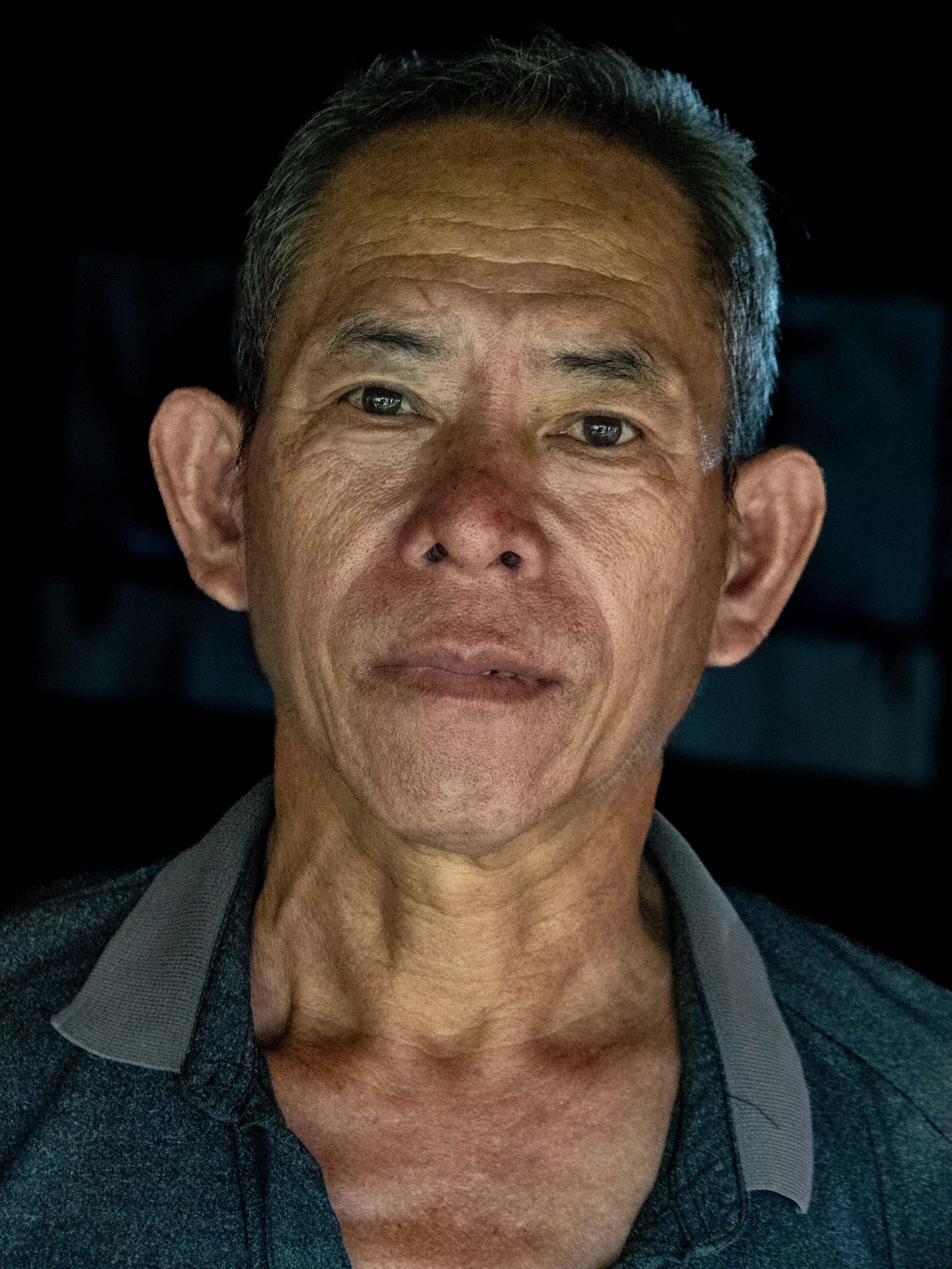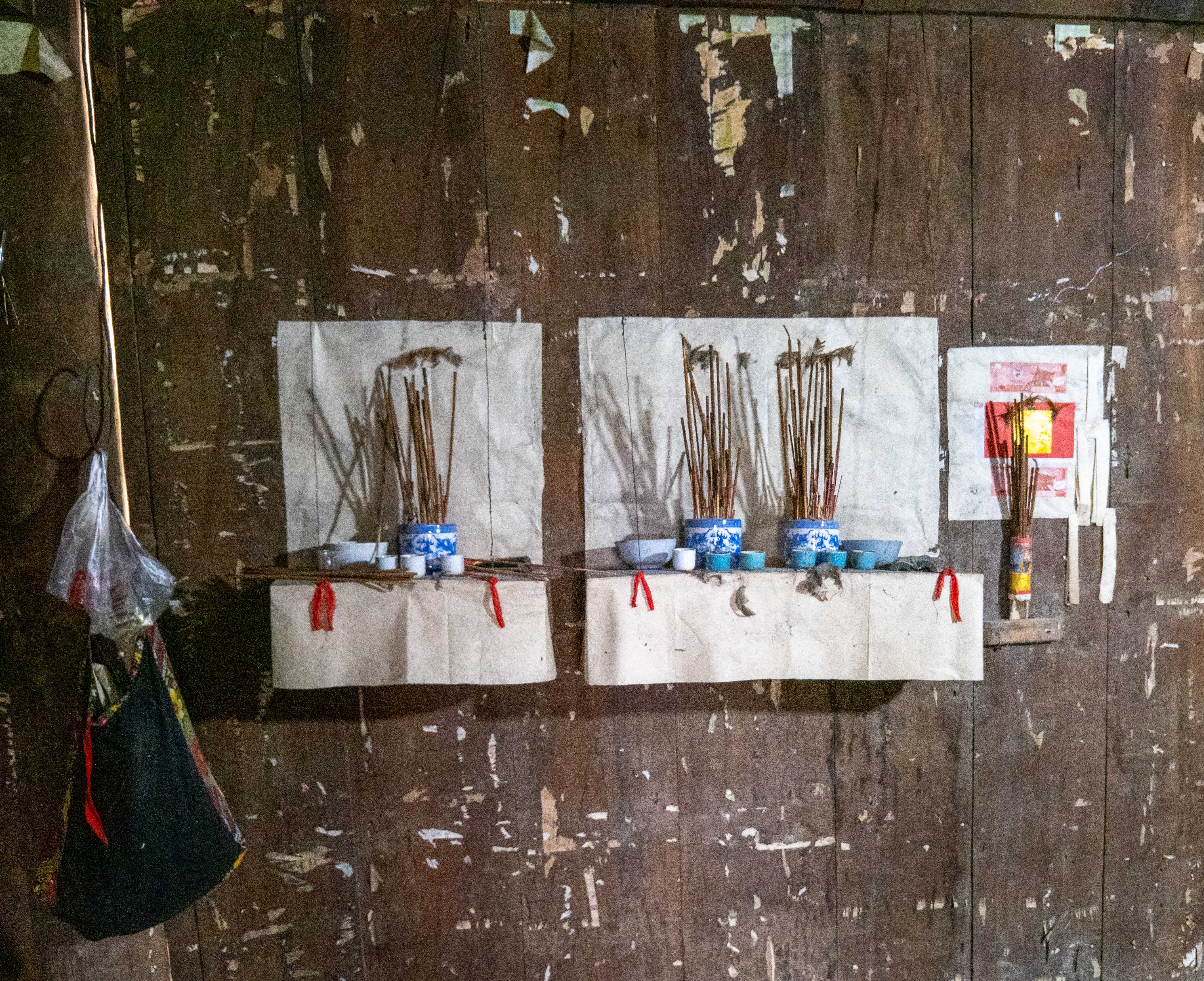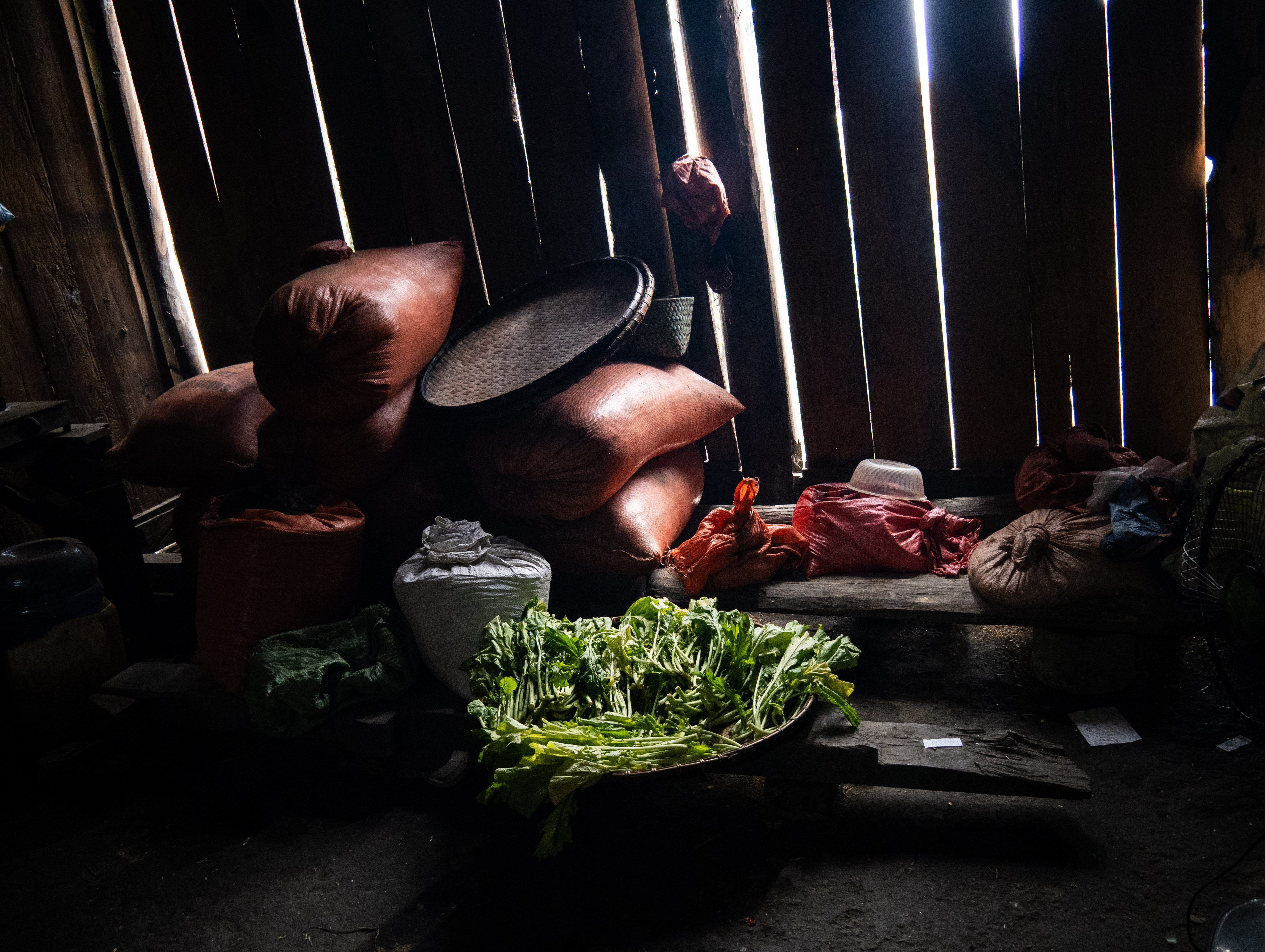 We started the descent down the first big climb. Thao pulled over and said we were going to go visit another local home. There was a tied-up dog barking pretty aggressively, so Thao shouted out and the man came out of the house. They chatted for a while and then he motioned for us to come with him.